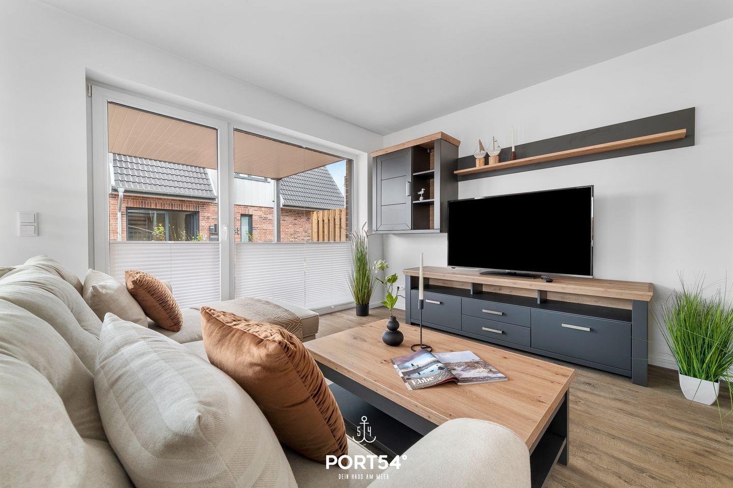 In gehobener und exklusiver Holzständerwerk-Bauweise erwartet Sie die im Erdgeschoss gelegene Ferienwohnung "Küste 6" auf etwa 64m². Der lichtdurchflutete Wohnbereich ist mit einer gemütlichen Wohnlandschaft inklusive Schlaffunktion (250x160cm) und einem Flachbild-TV ausgestattet. Die angrenzende Küche ist offen gestaltet und bietet alle Annehmlichkeiten, die für einen geselligen Kochabend benötigt werden. Am Esstisch mit gemütlichen Stühlen können Sie bequem gemeinsam essen oder einen Spieleabend verbringen. Bodentiefe Fenster lassen viel Licht herein und ermöglichen den Zutritt zur vollmöblierten Terrasse. Im Schlafzimmer erwarten Sie ein großes Doppelbett (180x200cm), sowie Verdunklungsmöglichkeiten für die Fenster. Das Badezimmer ist mit einer ebenerdigen Dusche, einem WC sowie einem Waschbecken ausgestattet. Zudem steht ein Fahrradschuppen für die Gäste zur Verfügung.