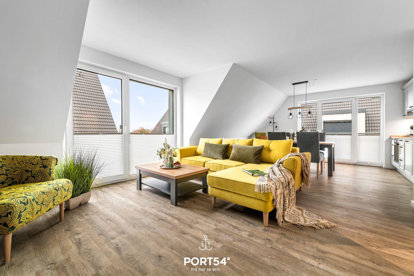 Die im OG gelegene Ferienwohnung "Küste 8" ist für 6 Personen geeignet. Der Wohnbereich ist mit einem Schlafsofa und einem TV ausgestattet. Die Küche ist offen gestaltet und voll ausgestattet. Bodentiefe Fenster lassen viel Licht herein und ermöglichen den Zutritt zum Balkon. Die beiden Schlafzimmer erwarten Sie mit je einem großes Doppelbett (180x200cm), sowie Verdunkelungsmöglichkeiten. Das Badezimmer ist mit einer ebenerdigen Dusche ausgestattet. Ein Gäste-WC ist vorhanden.