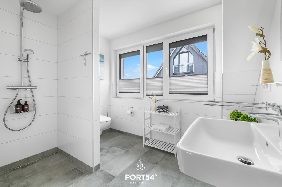 Willkommen im "Deichblick" in Büsum! Auf 85m² bietet die Ferienwohnung einen offenen Wohn- und Essbereich mit Küche, zwei Schlafzimmern, zwei Badezimmer sowie einen Balkon. Im Wohnbereich können Sie Ihre Urlaubstage vor dem Fernseher mit Ihrer Lieblings-Netflixserie ausklingen lassen oder auf dem Balkon bei einem Glas Wein die Nordseeluft genießen. Das Sofa im Wohnzimmer lässt sich zu einer Schlafcouch ausziehen (200x200cm) und bietet dann noch zwei weitere Schlafplätze. Die Küche ist mit allem ausgestattet, was Sie benötigen, um im Urlaub leckere Gerichte zu zaubern. In den Schlafzimmern finden Sie jeweils ein gemütliches Doppelbett (180x200cm), sowie einen Flachbild-TV und Verdunkelungsmöglichkeiten. Erholsamen Urlaubsnächten steht somit nichts mehr im Wege. In dem Badezimmer im 1. Obergeschoss gibt es eine ebenerdige Dusche, einen Föhn sowie einen Handtuchtrockner. Die Ferienwohnung verfügt über eine Waschmaschine, einen Wäschetrockner und einen Wäscheständer. Der möblierte Balkon lädt zu einem Morgenkaffee bei aufgehender Sonne ein und zu schönen Sonnenstunden den ganzen Tag über. Lassen Sie es sich gut gehen und entspannen Sie im Strandkorb zu zweit! Vor dem Haus gibt es einen Stellplatz. In dem abschließbaren Fahrradschuppen können Sie mitgebrachte oder ausgeliehene Fahrräder sicher unterstellen.
