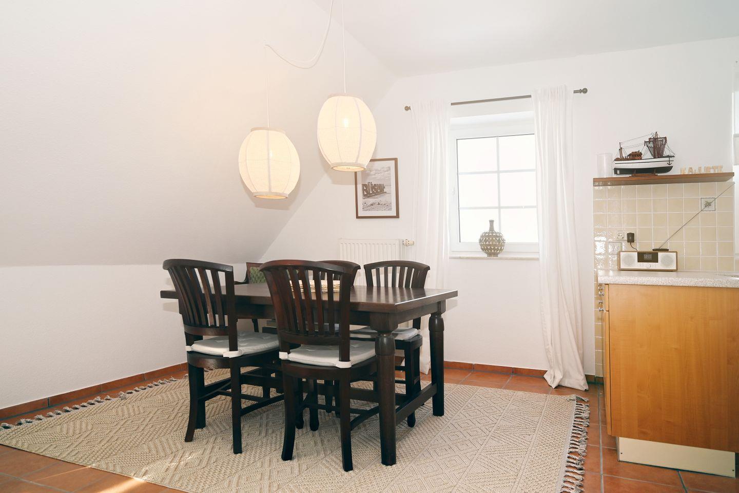 Die offene Küche grenzt direkt an den Essbereich an und ist mit allen erforderlichen Geräten und Utensilien ausgestattet.