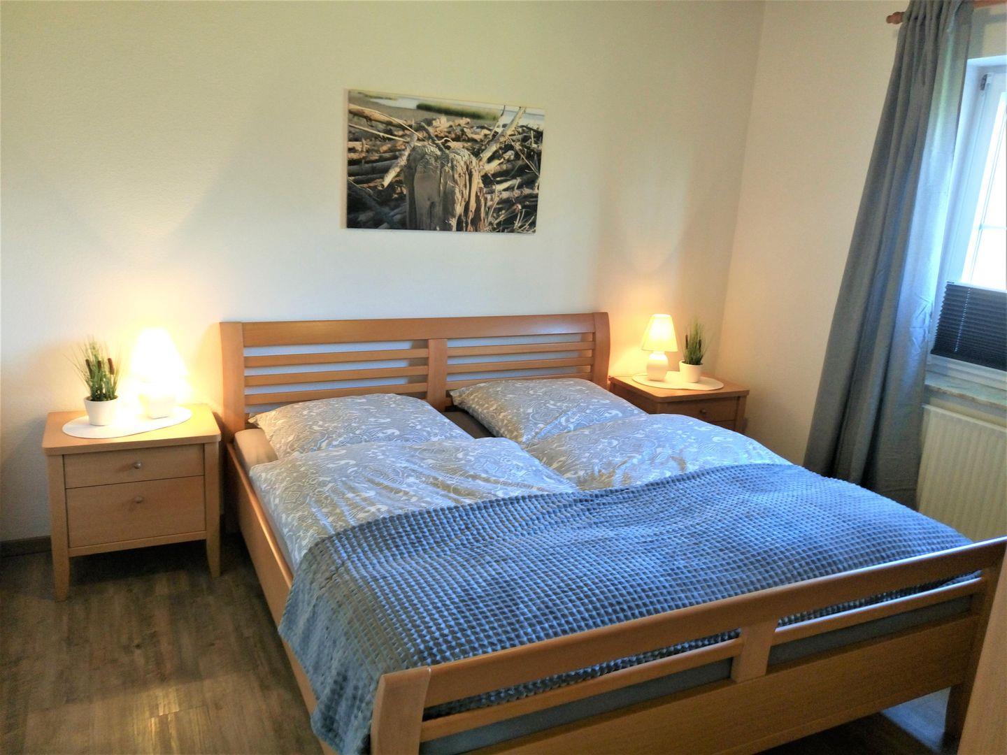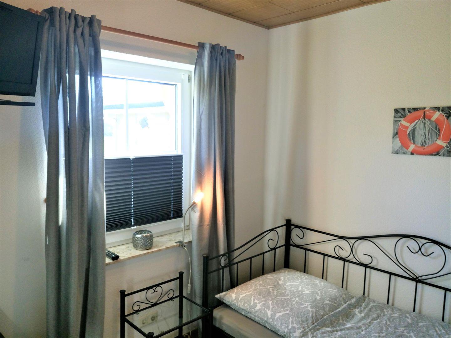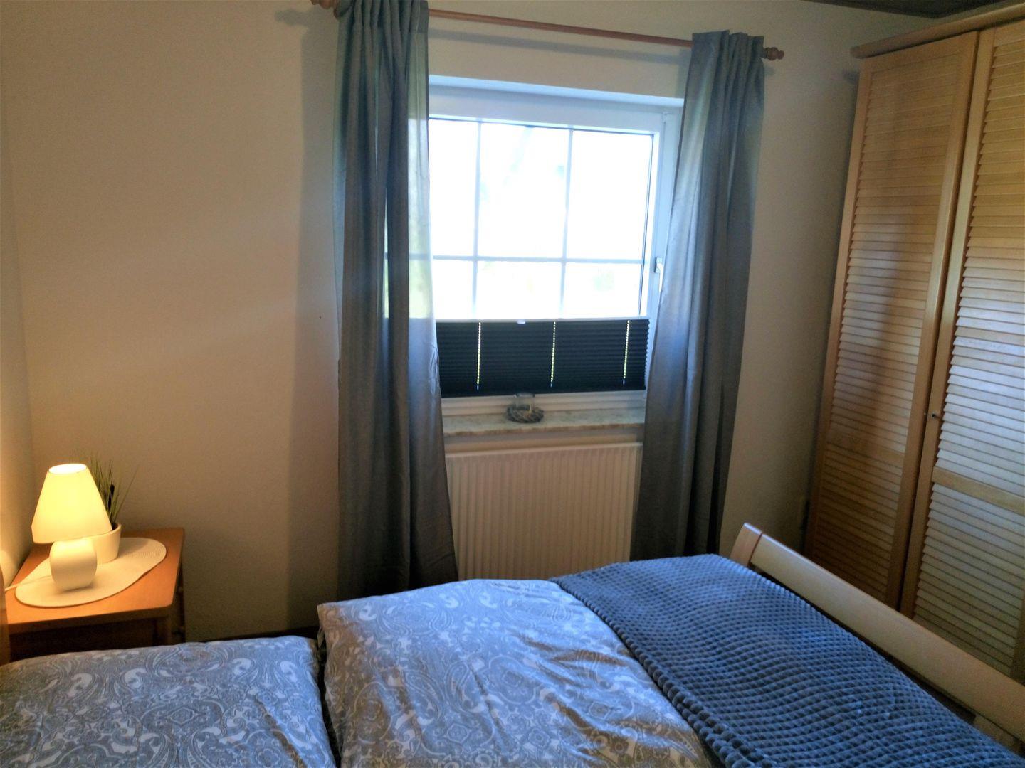 In dem Haus gibt es zwei Schlafzimmer. Das erste Schlafzimmer ist mit einem Doppelbett (1,80x 2m mit Einzelmatratzen) und einem großen Kleiderschrank eingerichtet. In dem zweiten Schlafzimmer gibt es ein Einzelbett und ein TV- Gerät.