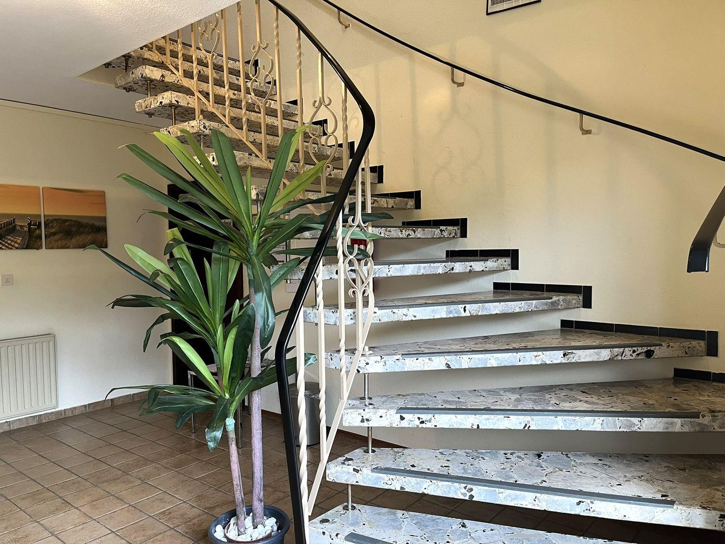 Auf dem Balkon kann man bei schönem Wetter die Sonne genießen, aber selbst bei nicht so guter Witterung lässt es sich im hauseigenen Schwimmbad, bei 28 Grad Wassertemperatur, mit Blick nach Draußen, herrlich entspannen.