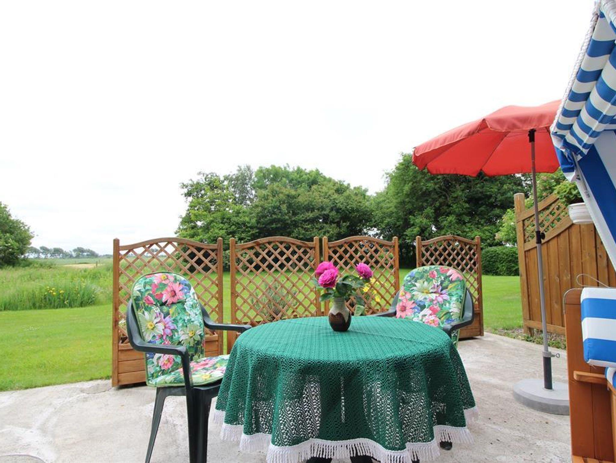 Im großen Garten mit Sitzecke und Strandkorb finden Sie Ruhe und Erholung. Für die Kinder haben wir ein Klettergerüst mit Schaukeln und Rutsche, einen Basketballkorb und sie können Ponyreiten.