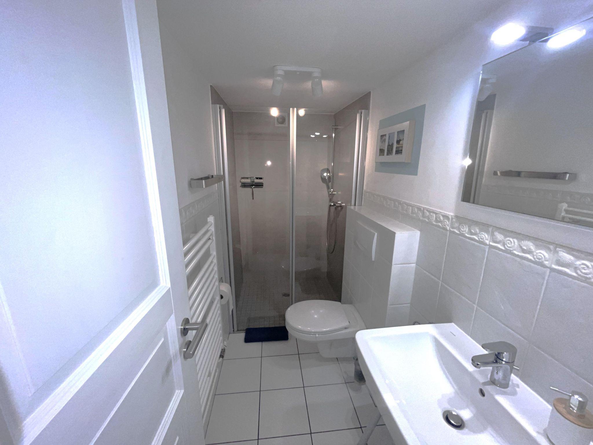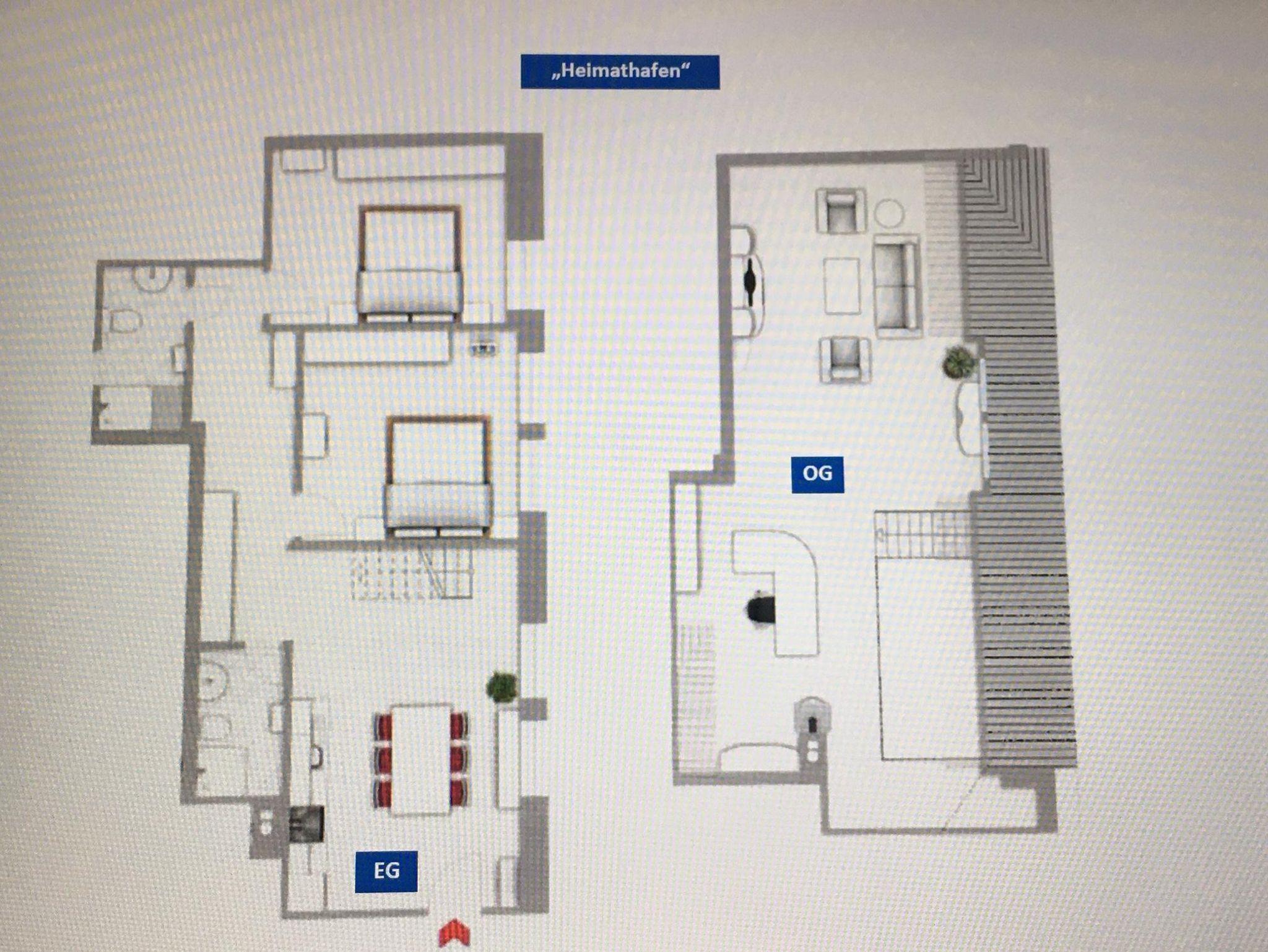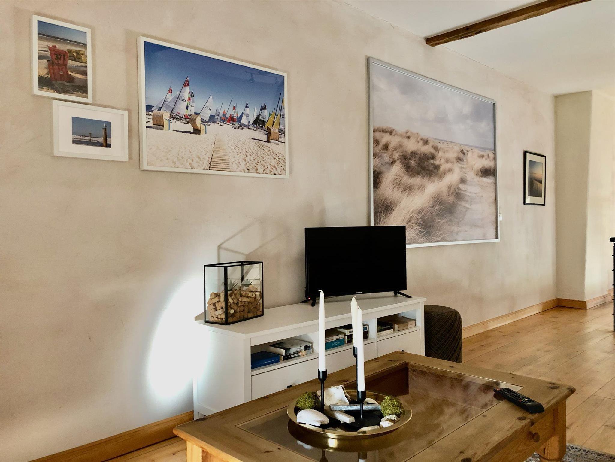 Der Wohnbereich im Obergeschoss bietet einen tollen Kaminofen, ist großzügig aufgeteilt und modern-behaglich ausgestattet. Im Erdgeschoss finden Sie einen schönen Essplatz für bis zu vier Personen in der lichtdurchfluteten Wohnküche. Die beiden Schlafzimmer sind komfortabel und maritim eingerichtet und haben jeweils ein eigenes Badezimmer. Auf unserem Anwesen können Sie sich im riesigen Garten erholen und die Ruhe zur Entspannung geniessen - die eigene Sonnenterasse samt Strandkorb, Brise und Weitblick sind inklusive.