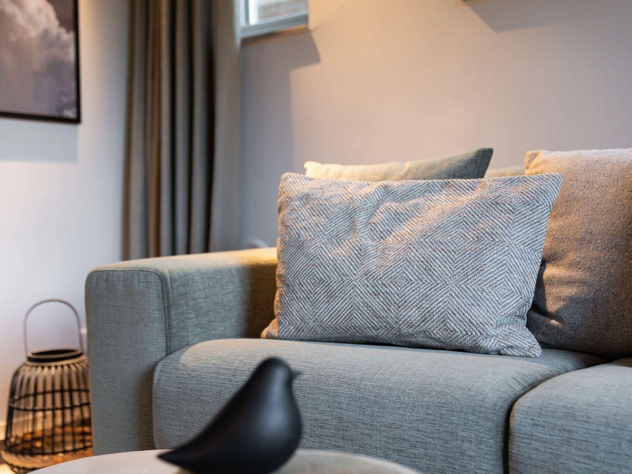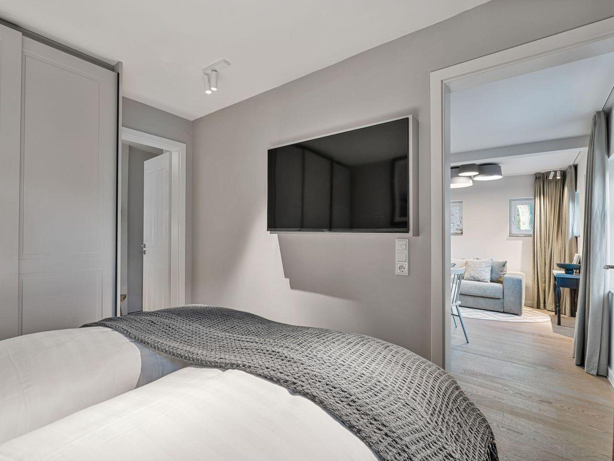 Die offene und exklusive Küche ist komplett ausgestattet und ideal für alle, die gerne selbst kochen. Hier finden Sie alle notwendigen Küchenutensilien sowie Hochwertige E-Geräte wie einen Induktionsherd, einen Backofen, eine Spülmaschine, eine Kaffeemaschine um Ihren Morgen mit einer Tasse frisch gebrühten Kaffee zu beginnen. Der eingerichtet Wohnbereich ist hell und exklusiv gestaltet und verbindet sich harmonisch mit der Küche. Gemütliche Abende können Sie beim Fernsehen verbringen; die Ferienwohnung ist mit zwei TV-Geräten ausgestattet, sodass Sie Ihre Lieblingssendungen in beiden Bereichen genießen können.