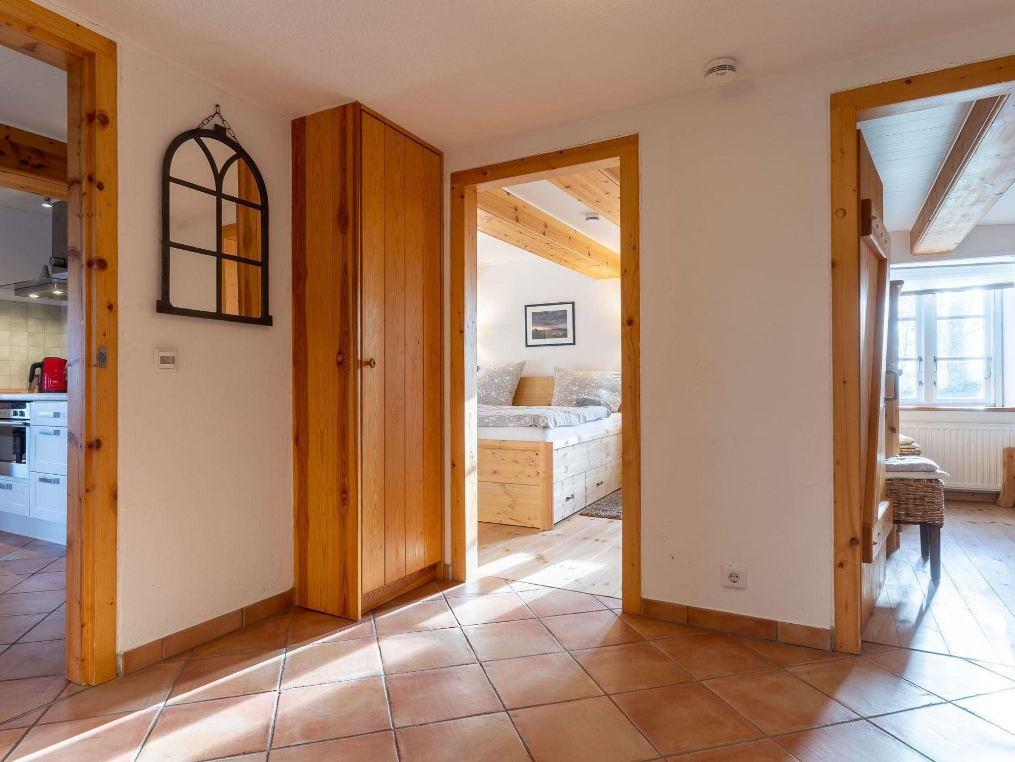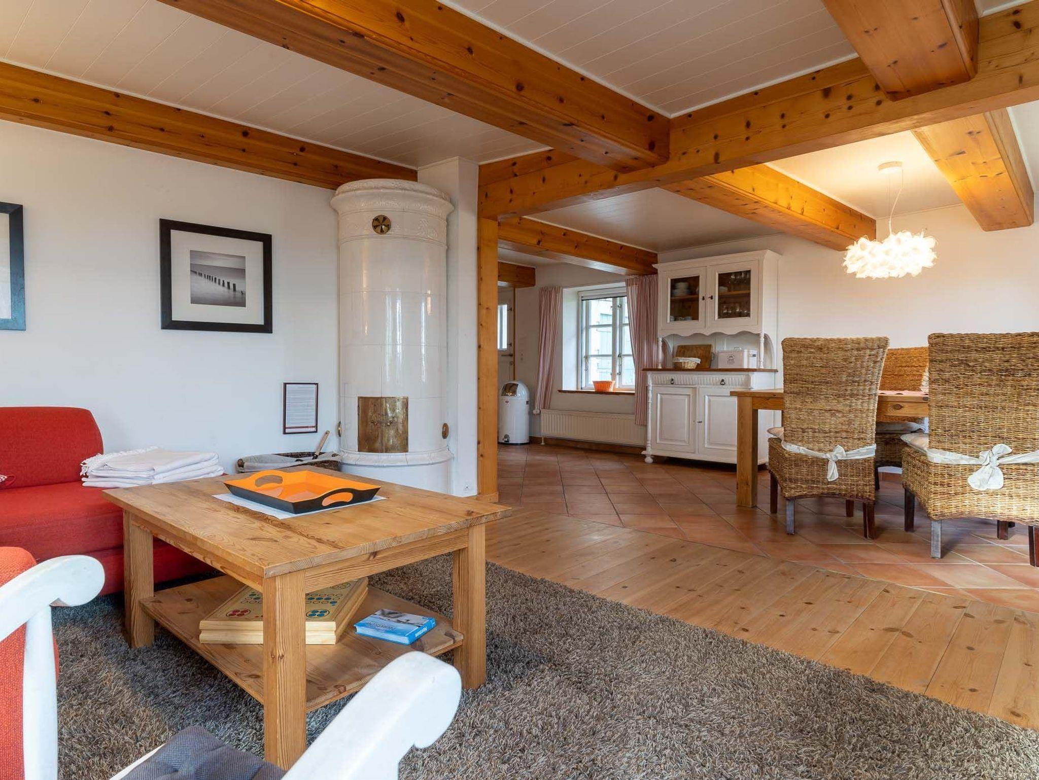 Das gemütliche Wohnzimmer mit Kamin lädt zum verweilen ein. Durch einen kleinen Flur gelangen Sie in die beiden Schlafzimmer. Eines mit einem Doppelbett und das andere mit zwei Einzelbetten. Ein Gästebett für ein weiteres Kind kann nach Absprache aufgestellt werden.