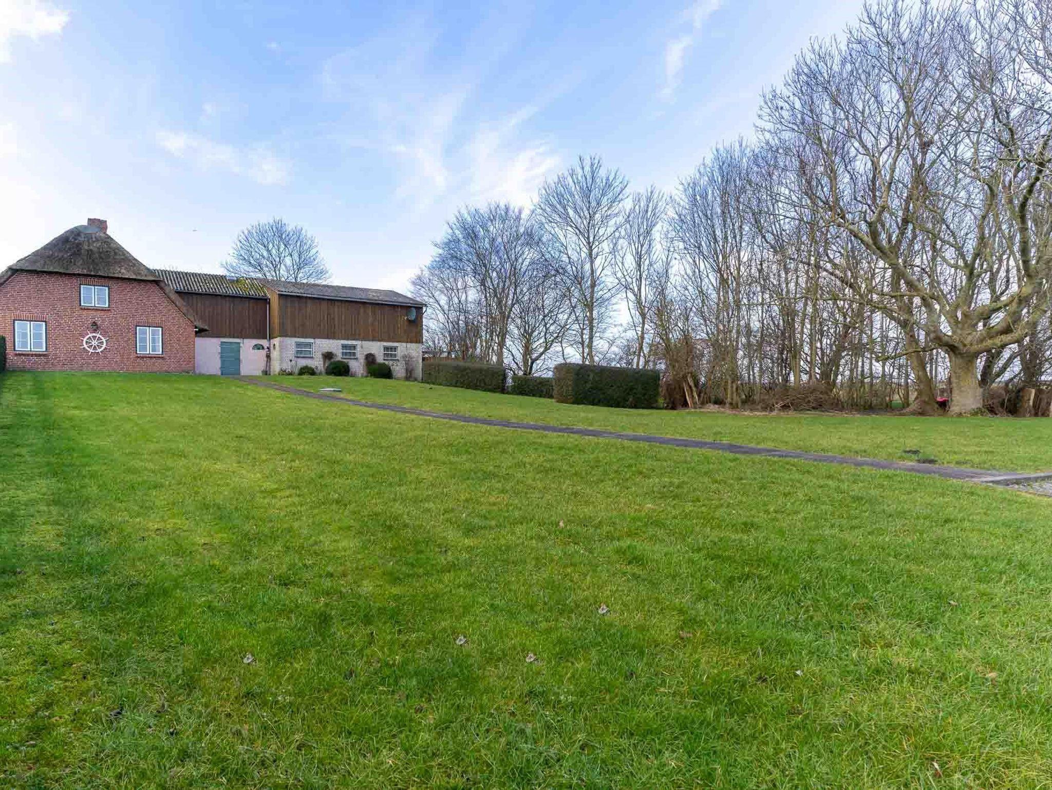 Die Fischerhütte befindet sich auf einer kleinen Warft und mit einem großzügigem Grundstück.