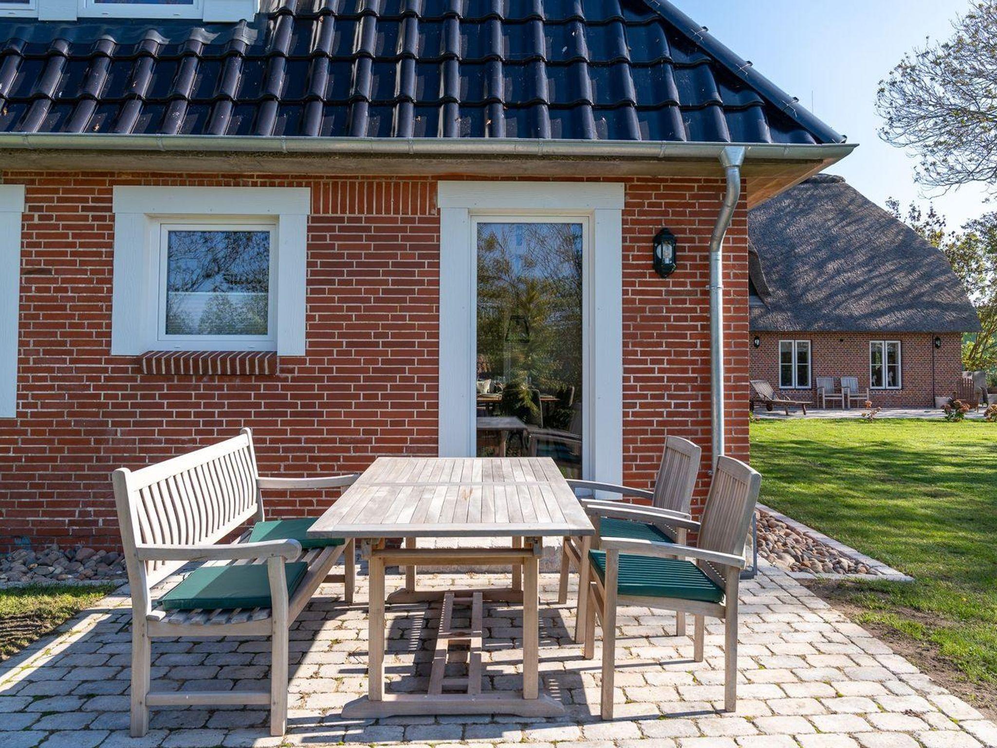 Auf der Sonnenterrasse mit hochwertigen Gartenmöbeln kann man herrlich entspannen und die Ruhe der Umgebung genießen.
