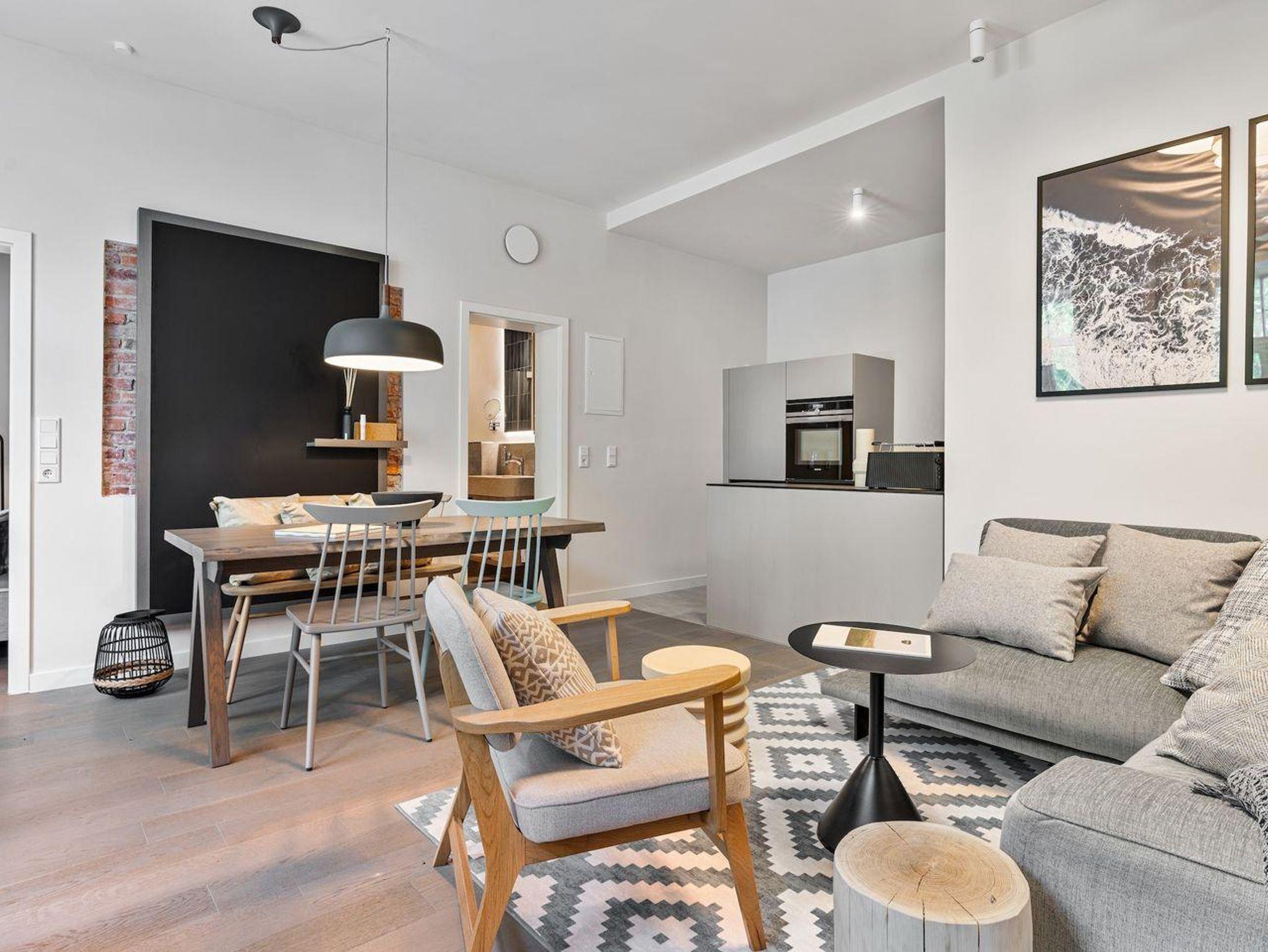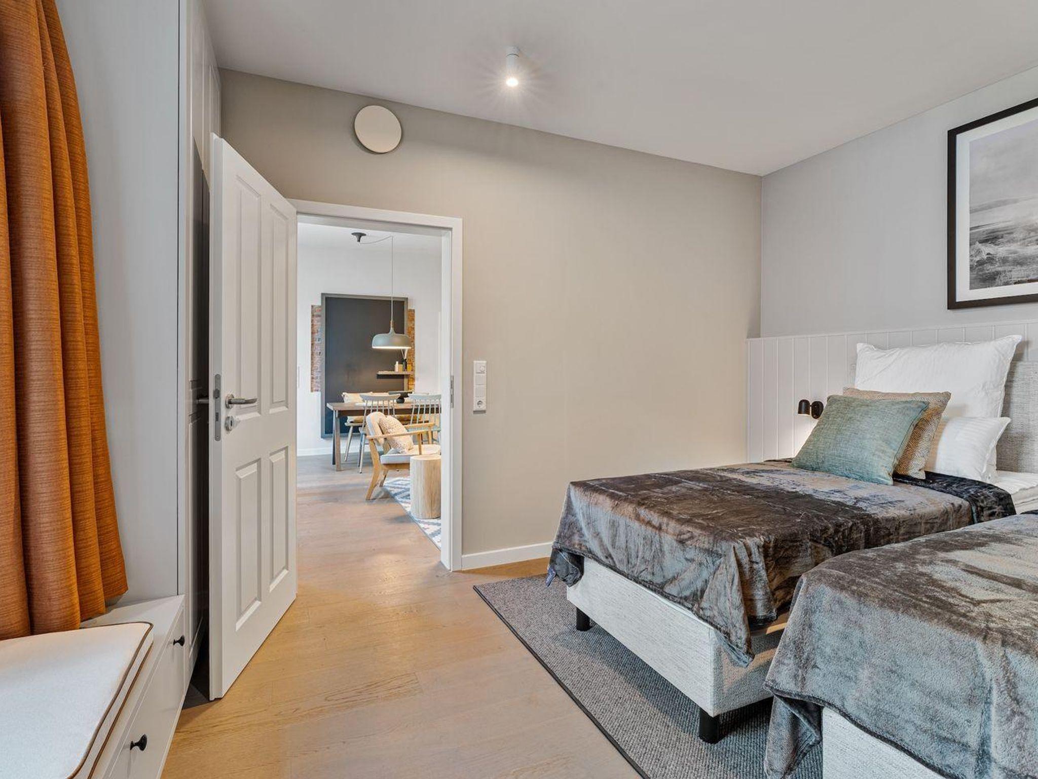 Die Wohnung erstreckt sich über das gesamte Parterre und verwöhnt Sie mit zwei meisterhaft eingerichteten Schlafzimmern mit erstklassigen Boxspringbetten (1,80 x 2,00) Meter die für himmlische Nächte sorgen sowie je einen Flatscreen. Das Badezimmer bietet höchsten Komfort und die gesamte Nichtraucherunterkunft verfügt über Fußbodenheizung für behagliches Wohnen zu jeder Jahreszeit.