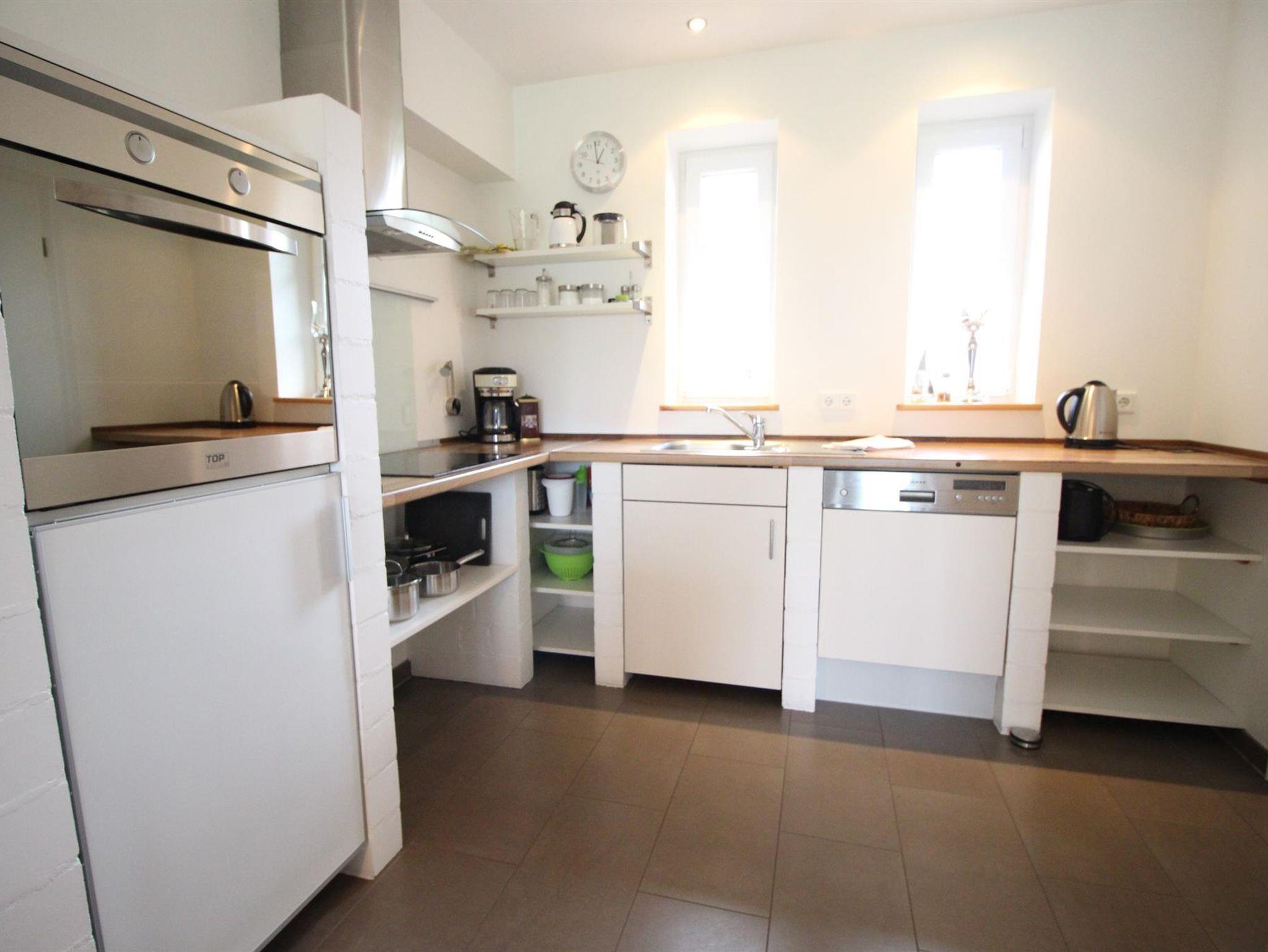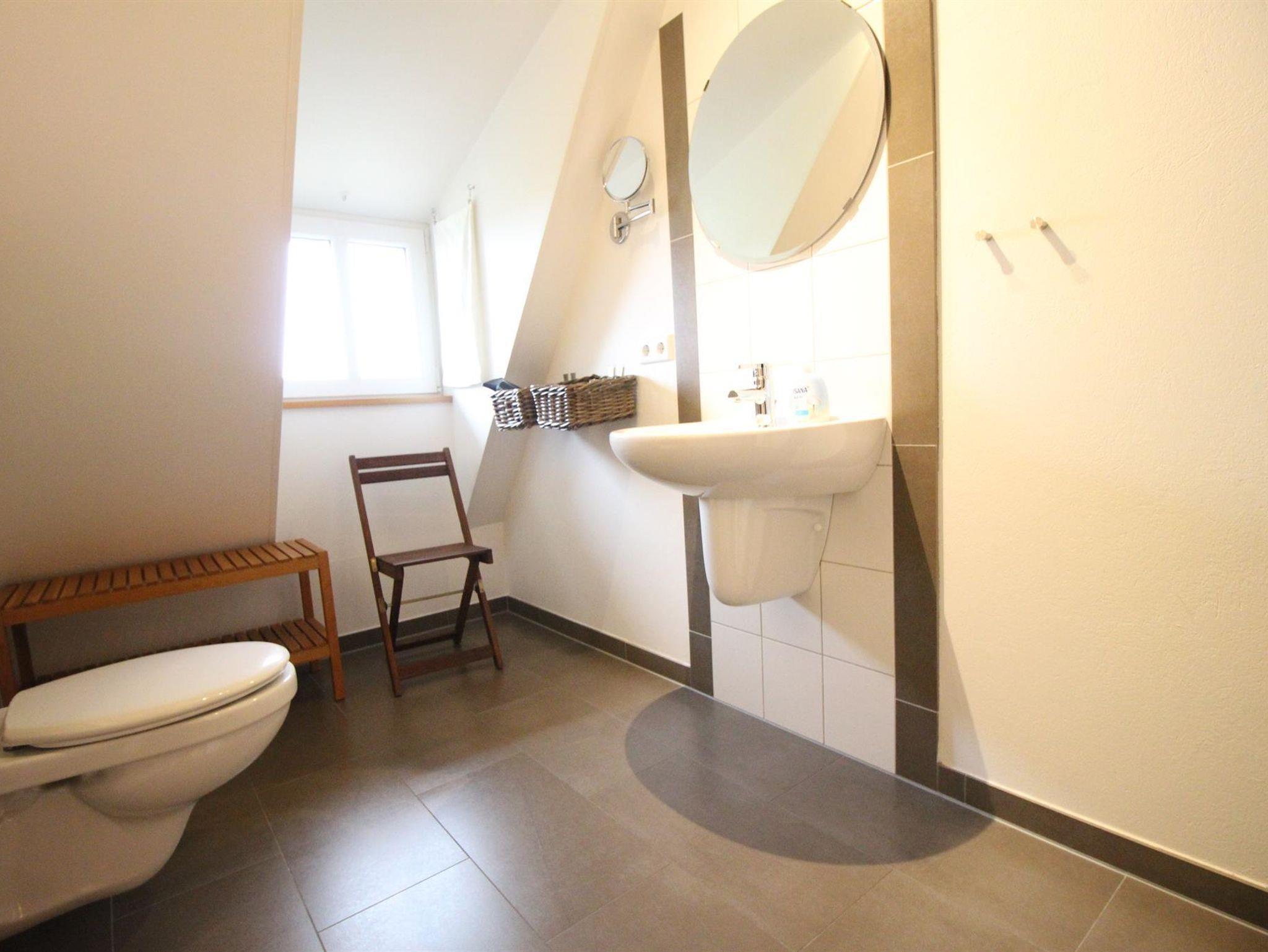 Der Wohn- und Essbereich ist hell und freundlich und hat einen direkten Zugang zu Ihrer Terrasse(Südlage), die mit einem Strandkorb, Holzgartenmöbeln und Sonnenschirm ausgestattet ist. SAT-TV und eine Stereoanlage sind vorhanden. Unter der Treppe finden Sie Platz für Ihre Koffer und Taschen. Der Küchenbereich ist mit Geschirrspüler, Backofen, Ceranfeld, Toaster, Cafissimo, Mixer, Kaffeemaschine, Wasserkocher ausgestattet und mit ausreichend Geschirr bestückt. Im ersten Stock befindet sich ein Bad mit Dusche und WC.( Haarfön,Handseife) Der Schlafraum ist mit einem Doppelbett (160 cm x200 cm) ausgestattet. Das Zimmer für Kleinkinder ist mit zwei Betten (70 cm x160 cm) eingerichtet und hat genügend Platz um Spielsachen und Bücher zu verstauen. Im zweiten Stockwerk befindet sich ein Schlafraum mit zwei Einzelbetten (90 cm x 200 cm) Paterre ist ein Flur und ein extra WC.