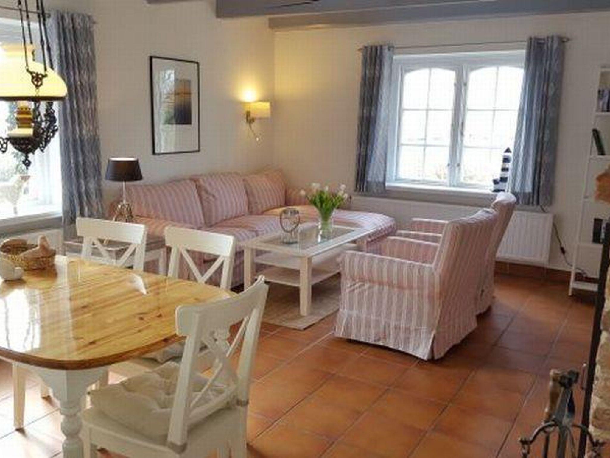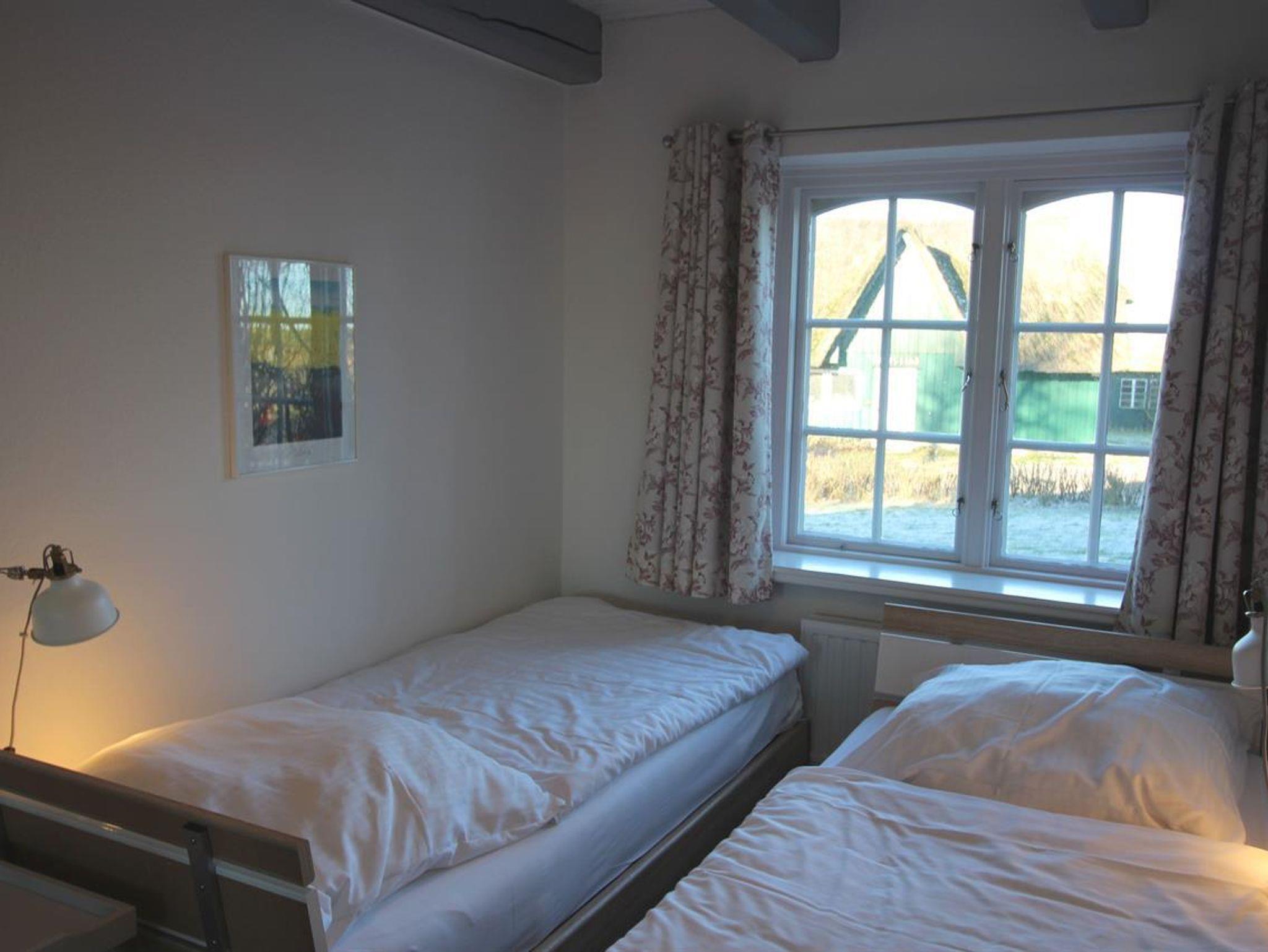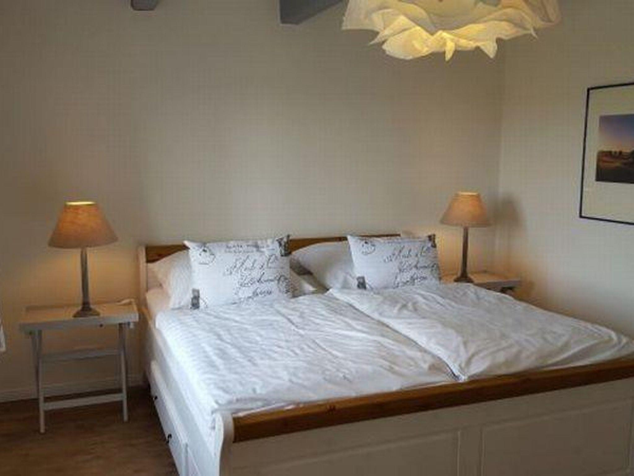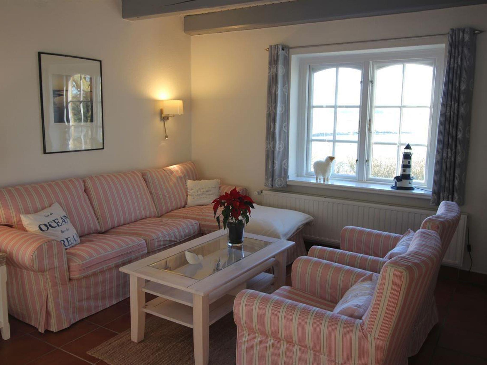 Die 3-Zimmer-Wohnung ist ca. 70 qm groß und mit 2 Schlafzimmern, einem Bad für 4 Personen geeignet. Vom Wohnzimmer mit Kaminofen sowie vom Elternschlafzimmer haben Sie den einmaligen Blick über die Wiesen zum Leuchtturm. Es gehört auch eine Terrasse mit Gartenmöbeln dazu, hier kann man wirklich weit gucken und abschalten.