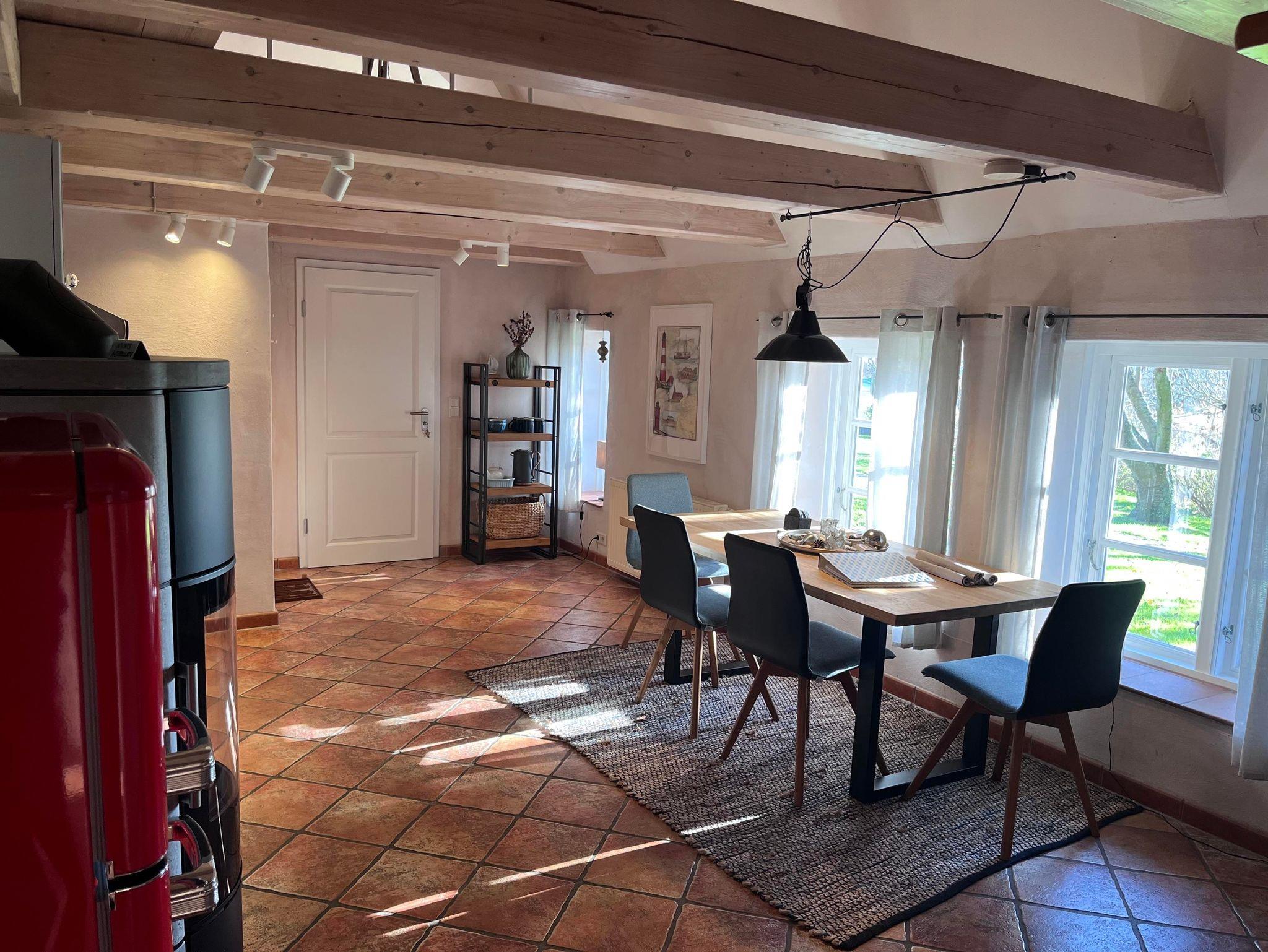 Im Garten stehen Ihnen mehrere Sonnenterassen und Strandkörbe zur Verfügung. Neben viel Platz für Kinder und Hunde gibt es Schaukeln, sowie Grillmöglichkeit - perfekt für einen schönen lauen Abend. Die großzügigen Parkplätze zur exklusiven Nutzung direkt auf dem Grundstück vor der Tür runden das Bild ab. In der 120qm großen Loo-Diele können Fahrräder, etc. sicher abgestellt und E-Bikes geladen werden.