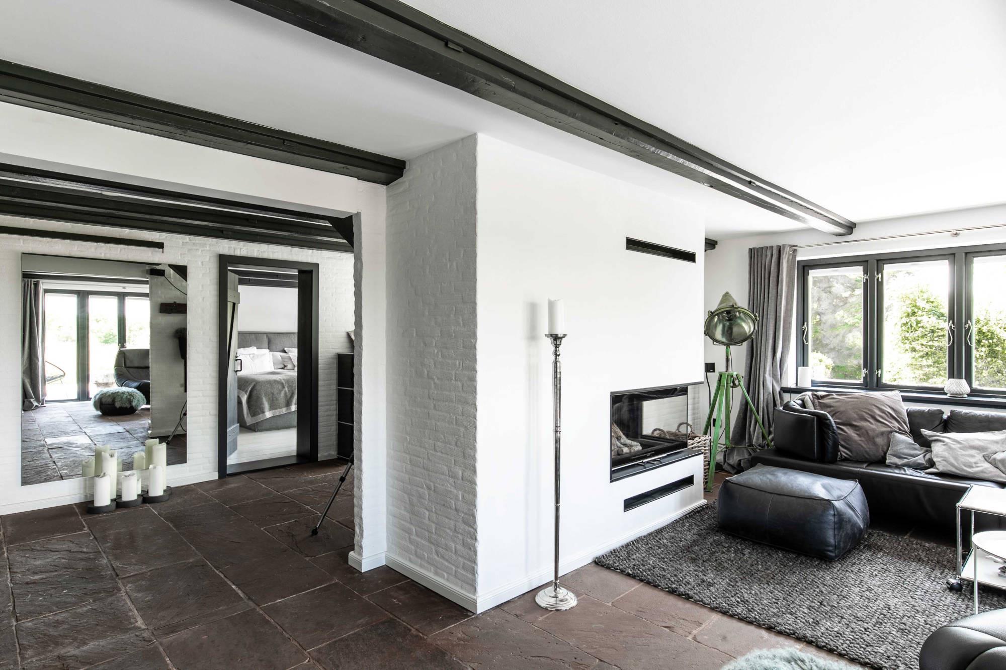 Von außen wird das Grundstück von typischem Weidengeflecht und einer Toranlage eingefasst – Holzterrassen umgeben das Haus. Innen sind die Räume voller Licht und offen, die Farben in weiss und grau gehalten, die Fussböden mit Langdielen und Öllandplatten. Die Einrichtung besteht aus Klassikern und schönen Stücken und bleibt doch schlicht und puristisch, dabei fehlt es an nichts – es ist alles da – wirklich alles.