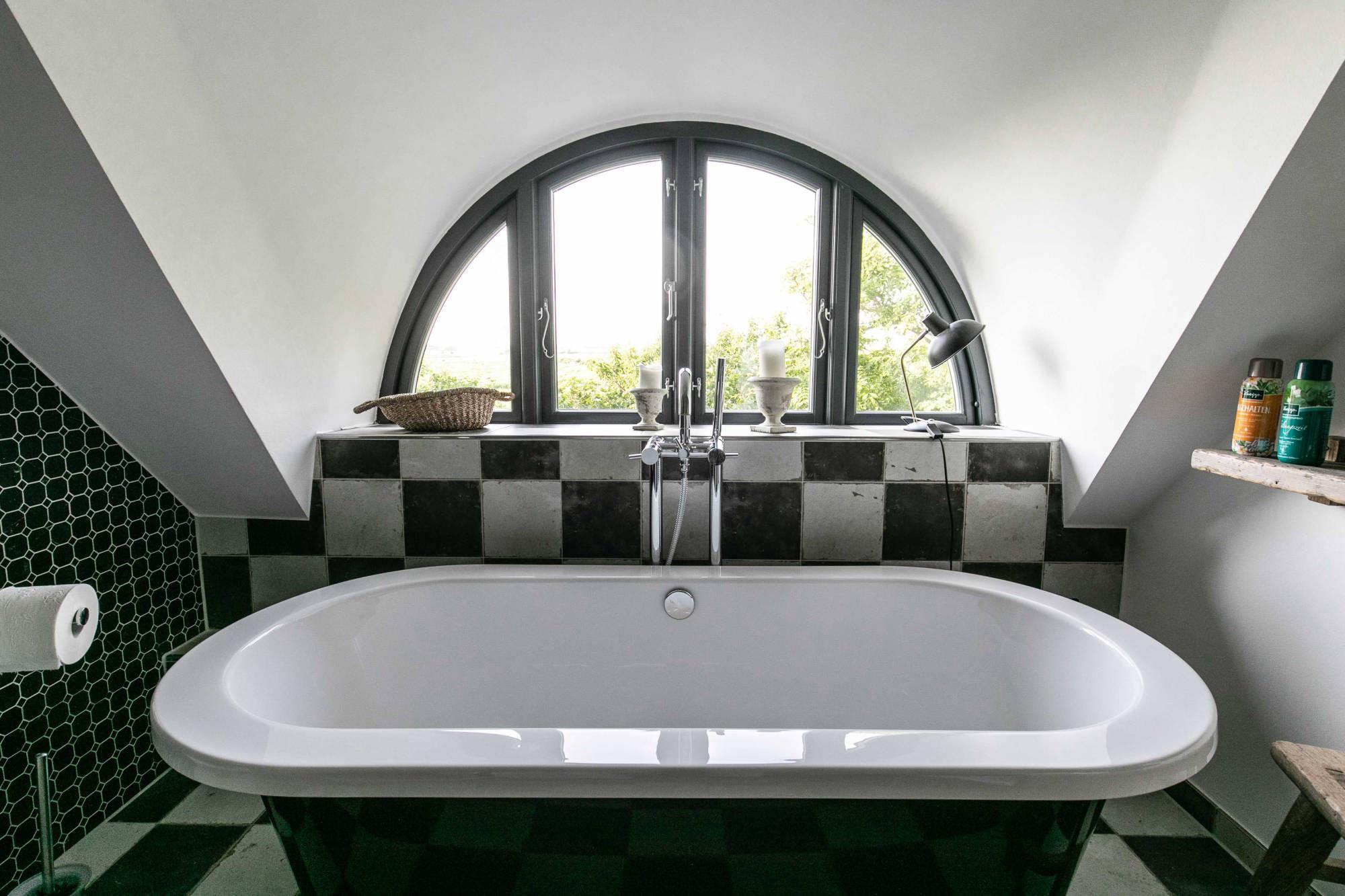 Die Küche ist mit einem 90cm Induktions Range Cooker ausgestattet, Smeg Kühlschrank und einer Kochhexe.