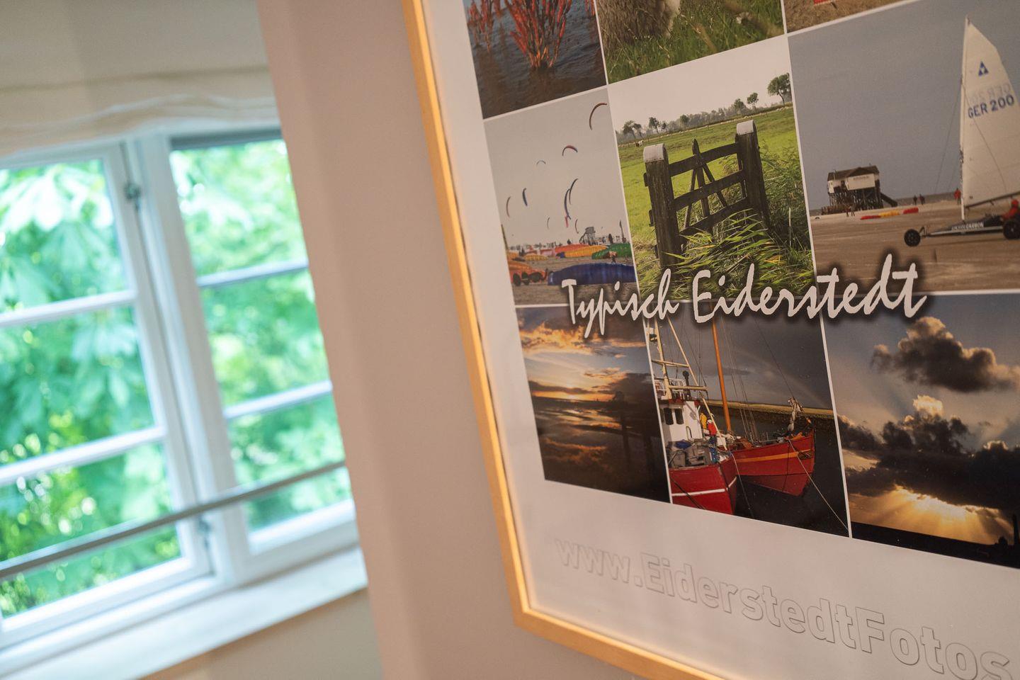 Heute steht es auf einer erhöhten Warft, umgeben von einem weitläufigen Gartengrundstück von beeindruckenden 700 Quadratmetern. Die malerische Umgebung von Eiderstedt lässt sich von der großzügigen Terrasse aus bestens genießen, denn hier bietet sich ein unvergleichlicher Blick über die sanften Hügel und das weite Land.