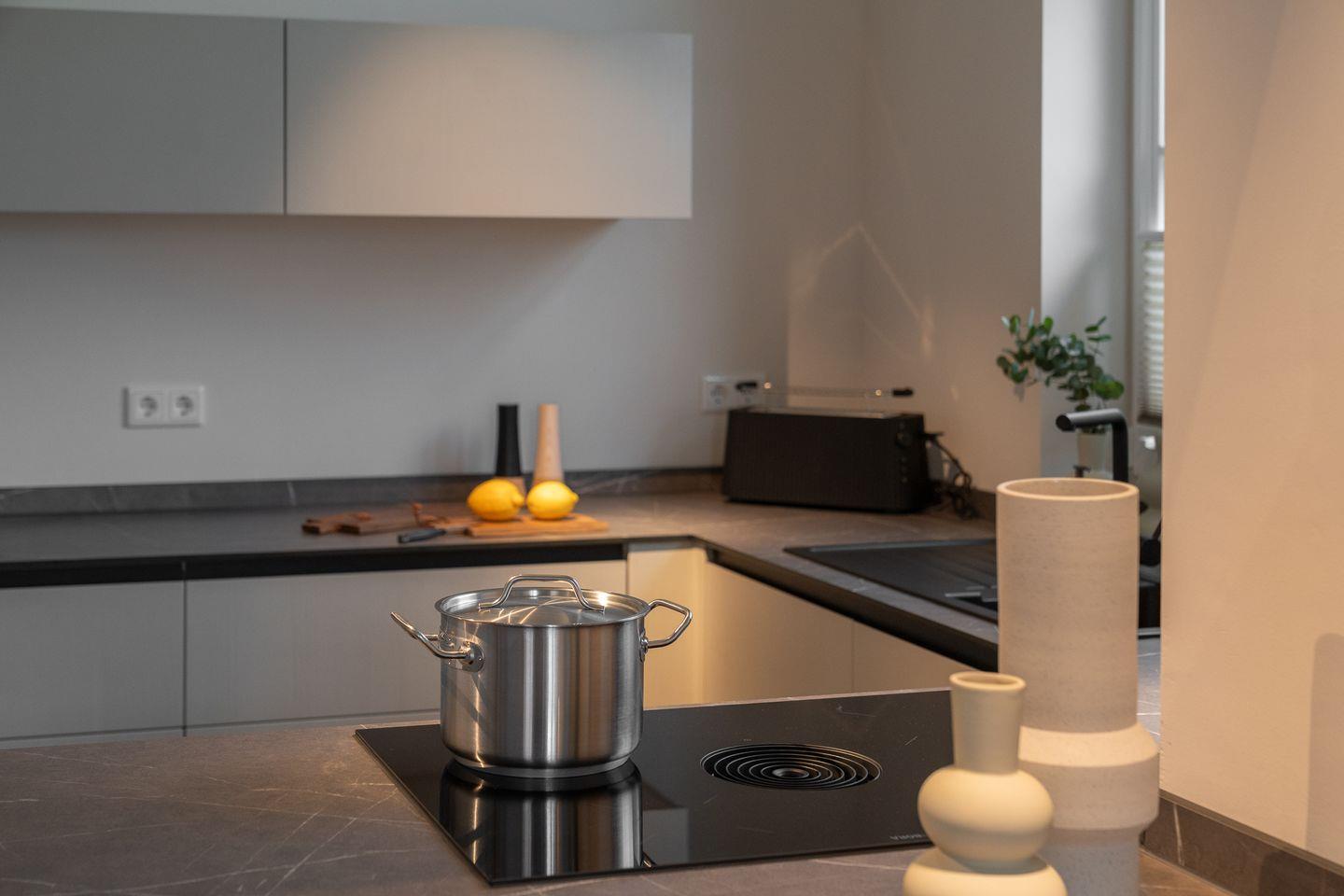 Der offene Wohn- und Küchenbereich ist ein echtes Highlight. Die voll ausgestattete und hochwertige Küche mit Induktionsherd, Backofen, Spülmaschine, Wasserkocher, Toaster und Kaffeemaschine lässt keine Wünsche offen und verwandelt das Kochen in ein genussvolles Erlebnis. Die Küche ist nahtlos mit dem Wohnzimmer verbunden.