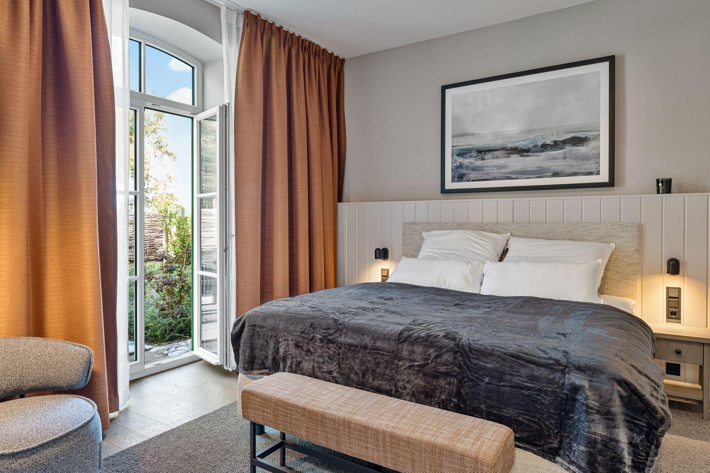 Die Wohnung erstreckt sich über das gesamte Parterre und verwöhnt Sie mit zwei meisterhaft eingerichteten Schlafzimmern mit erstklassigen Boxspringbetten, die für himmlische Nächte sorgen sowie je einen Flatscreen.
