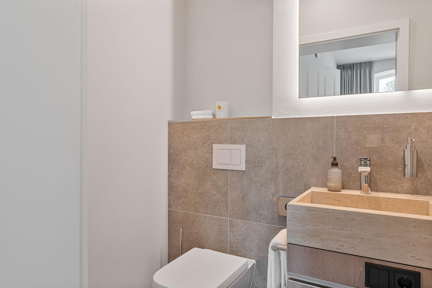 Das Badezimmer mit einer Walk in Dusche und zusätzlichen Gäste WC, bietet höchsten Komfort und die gesamte Nichtraucherunterkunft verfügt über Fußbodenheizung für behagliches Wohnen zu jeder Jahreszeit.
