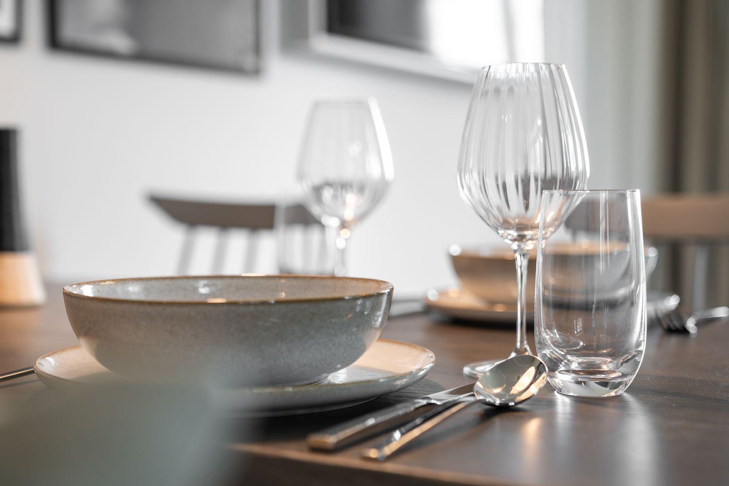 In der offenen und exklusiven Küche, die nahtlos in das Wohnzimmer übergeht - sind Sie bestens ausgestattet, um kulinarische Köstlichkeiten zuzubereiten. Die Küche ist mit hochwertigen E-Geräten ausgestattet, darunter ein Induktionsherd, ein Backofen, eine Spülmaschine, ein Kühlschrank mit Gefrierfach, sowie Mikrowelle, Toaster und Kaffeemaschine.