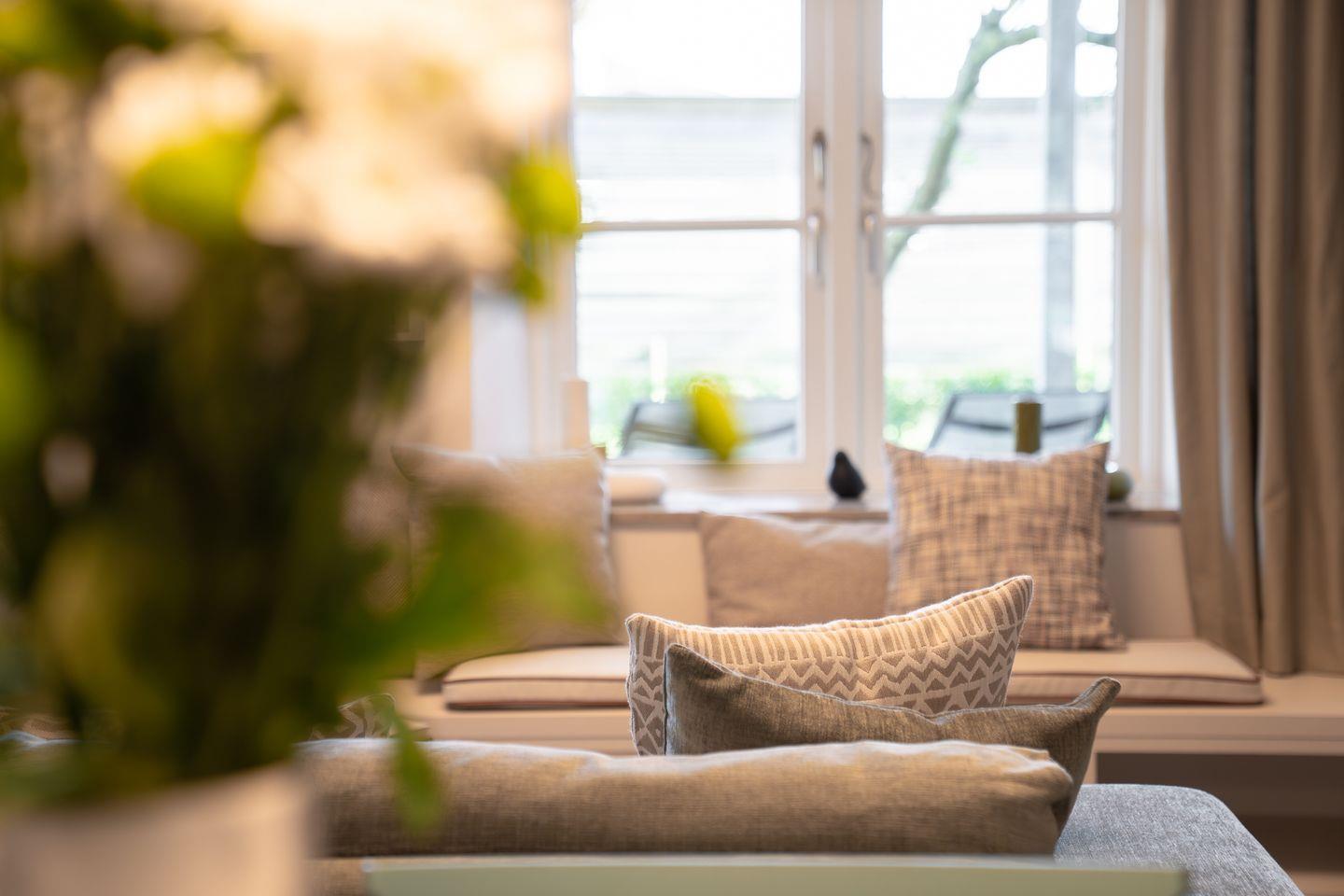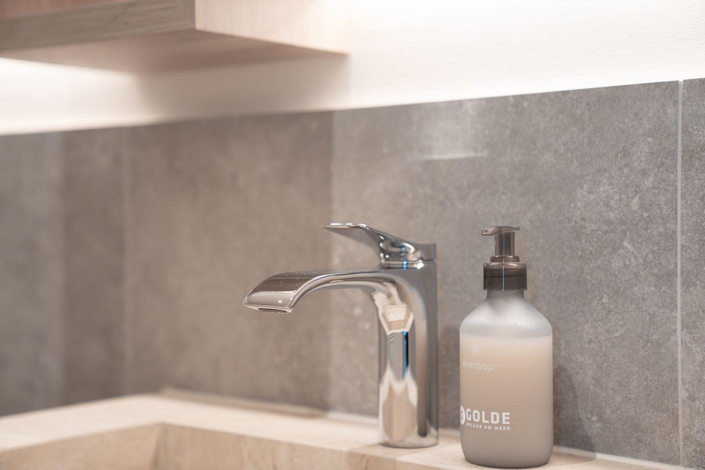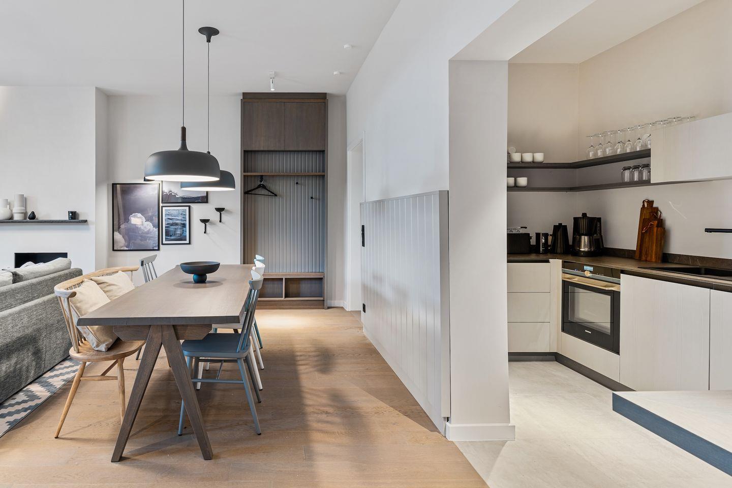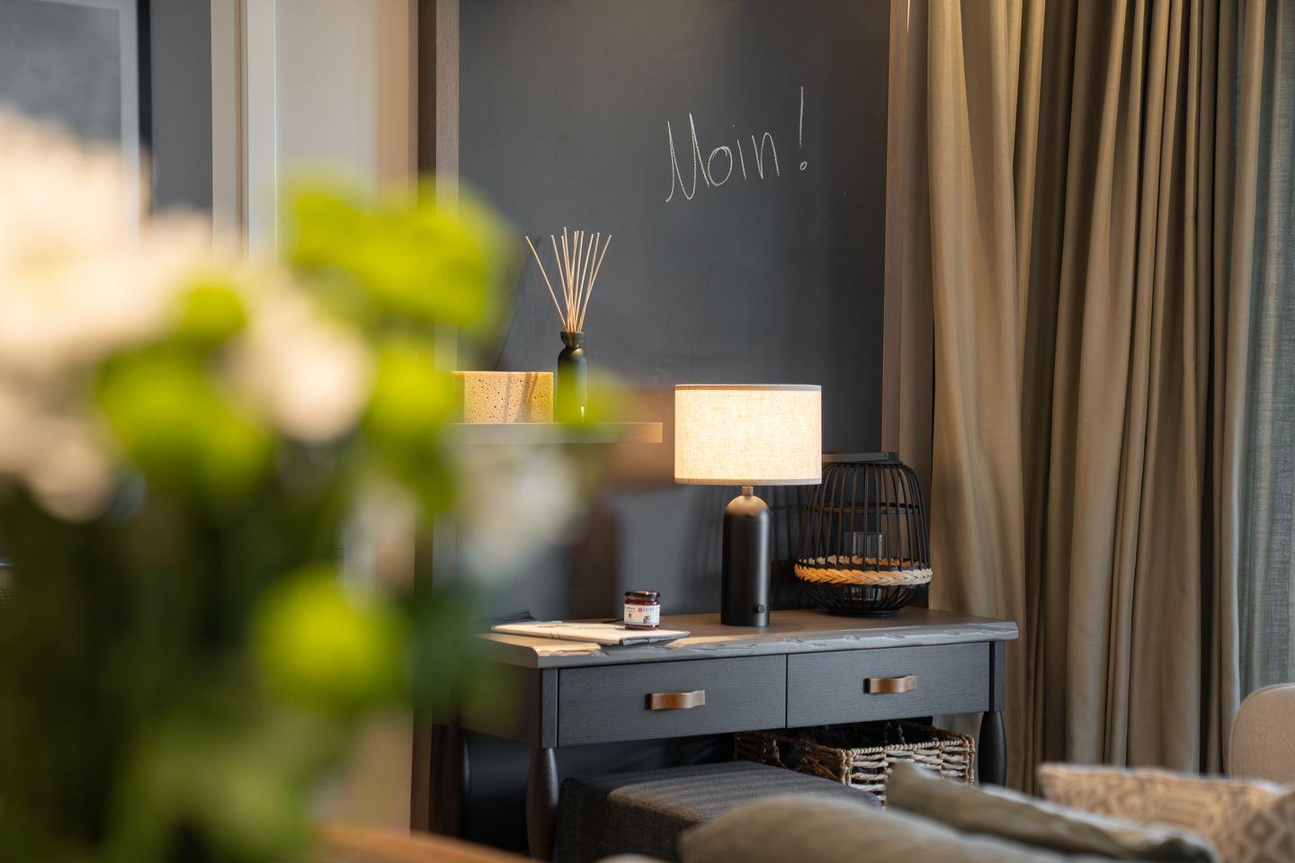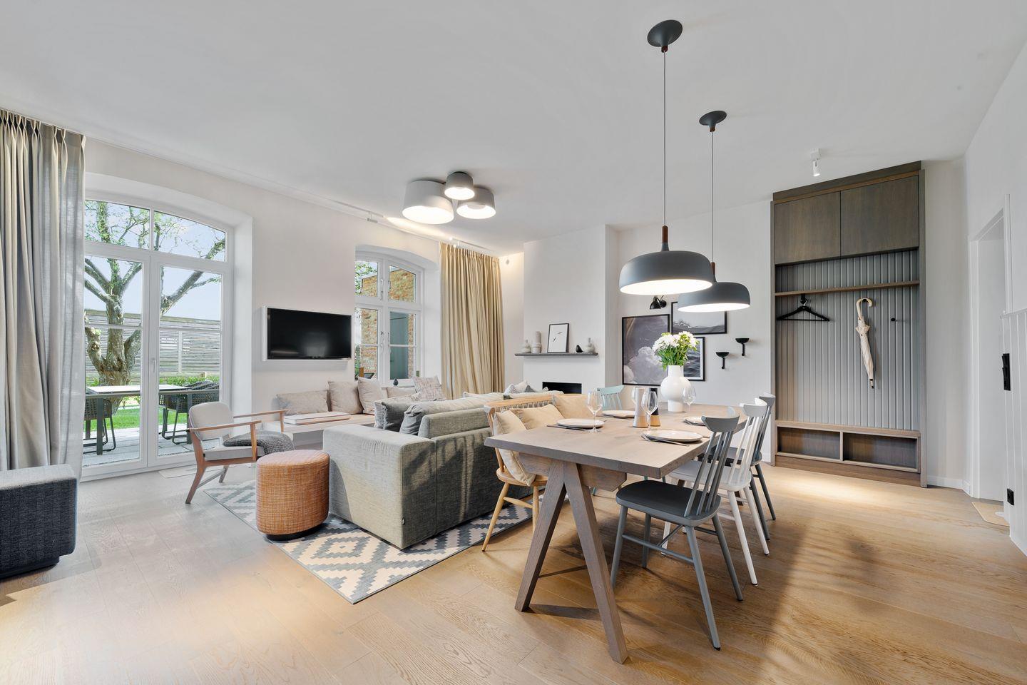 Die offene und exklusive Küche ist komplett ausgestattet und ideal für alle, die gerne selbst kochen. Hier finden Sie alle notwendigen Küchenutensilien sowie Hochwertige E-Geräte wie einen Induktionsherd, einen Backofen, eine Spülmaschine, eine Kaffeemaschine um Ihren Morgen mit einer Tasse frisch gebrühten Kaffee zu beginnen. Der eingerichtet Wohnbereich ist hell und exklusiv gestaltet und verbindet sich harmonisch mit der Küche. Gemütliche Abende können Sie beim Fernsehen verbringen; die Ferienwohnung ist mit zwei TV-Geräten ausgestattet, sodass Sie Ihre Lieblingssendungen in beiden Bereichen genießen können.