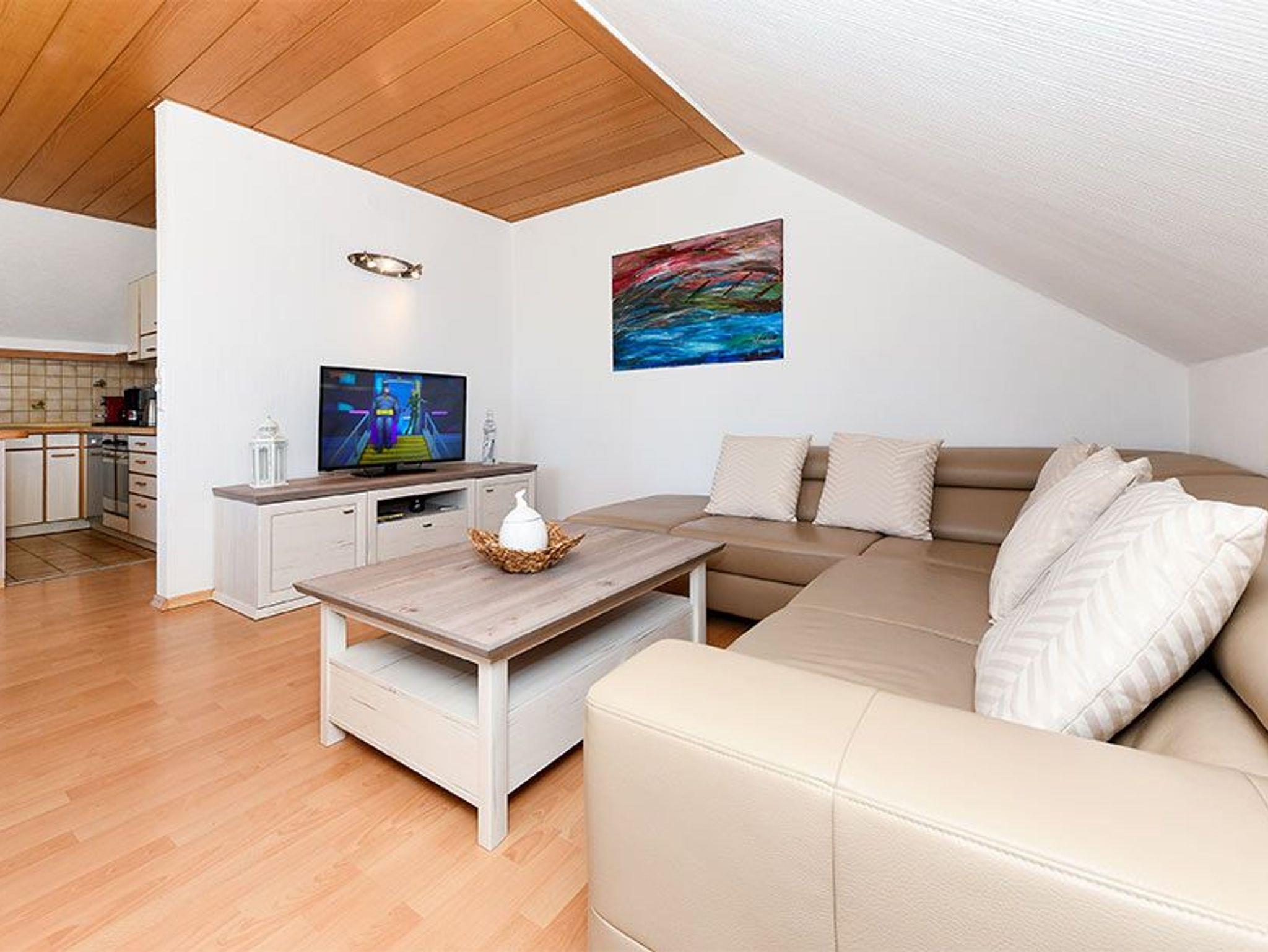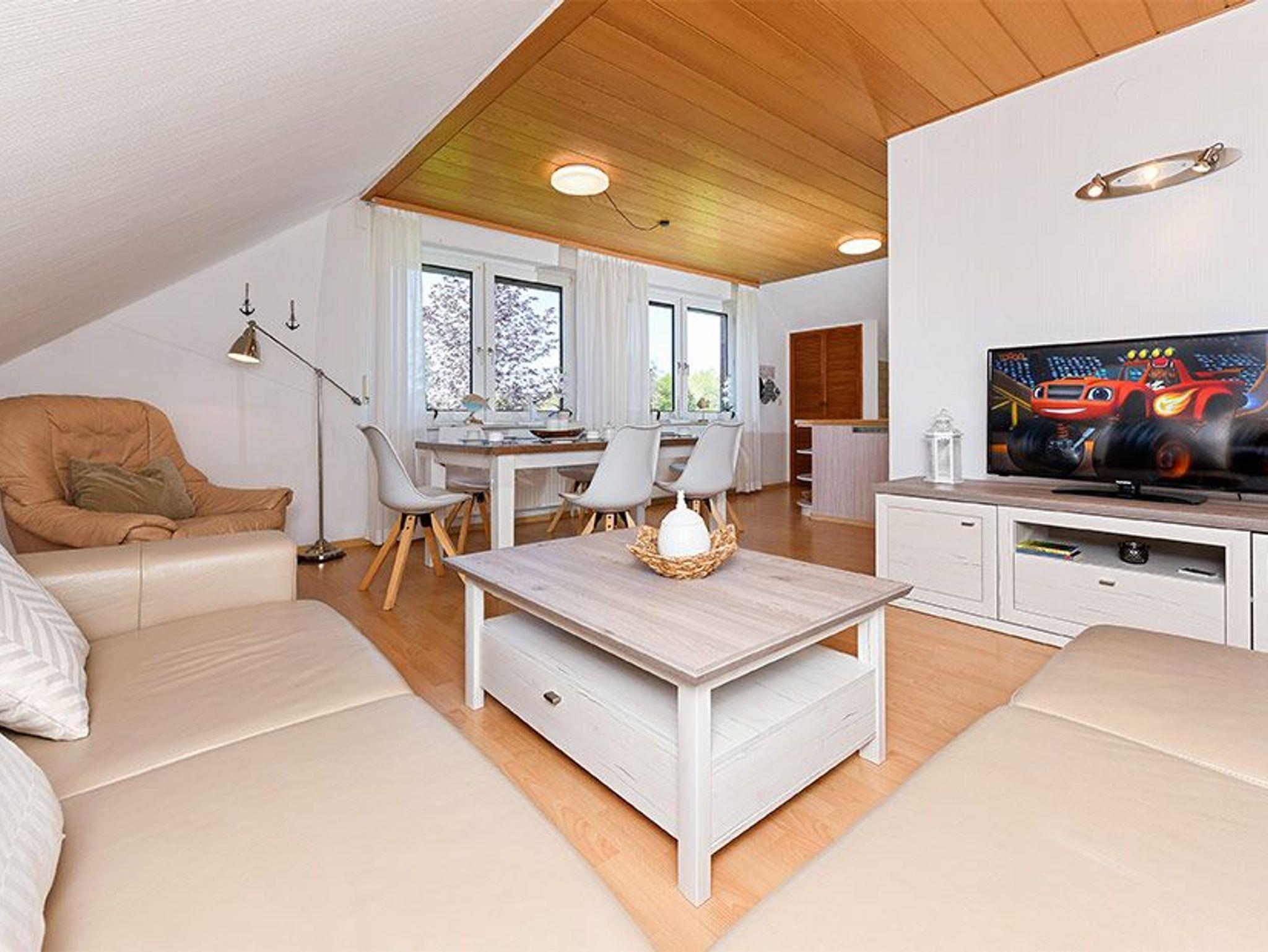 Sie wohnen in einer sehr gut ausgestatteten und komfortabel und freundlich gestalteten und eingerichteten ungefähr 90 Quadratmeter großen Ferienwohnung mit drei Schlafzimmern, einem überdachten Balkon (Loggia) und einer möblierten Sonnenterrasse im Garten. Das Haus mit der Ferienwohnung „Rotbuche“ steht in einer ruhigen Seitenstraße. Hier werden Sie zu zweit oder mit Ihrer Familie mit bis zu sechs Personen einen erholsamen und schönen Urlaub verbringen!