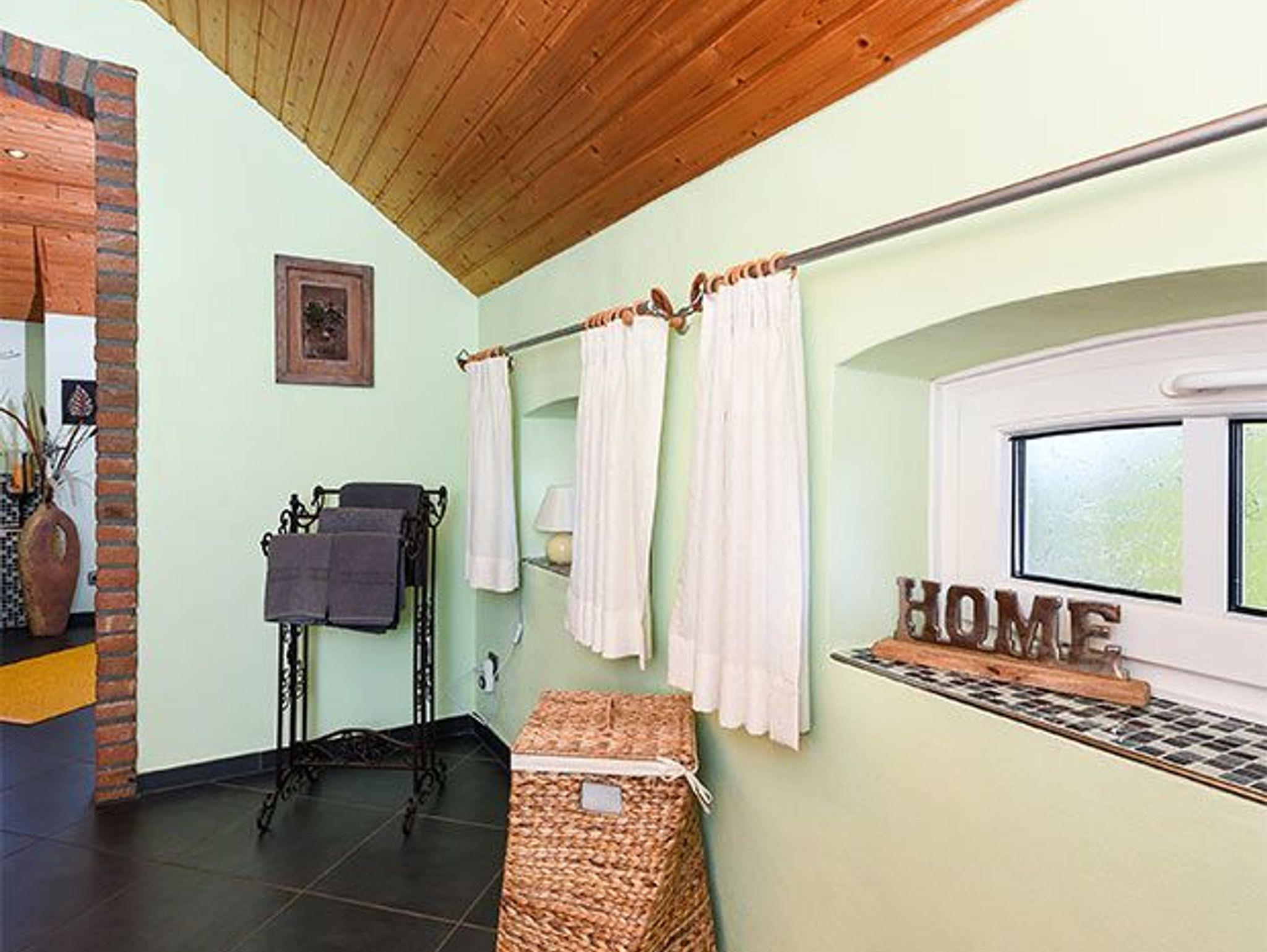 Badezimmer mit Badewanne, Dusche, Waschtisch und WC