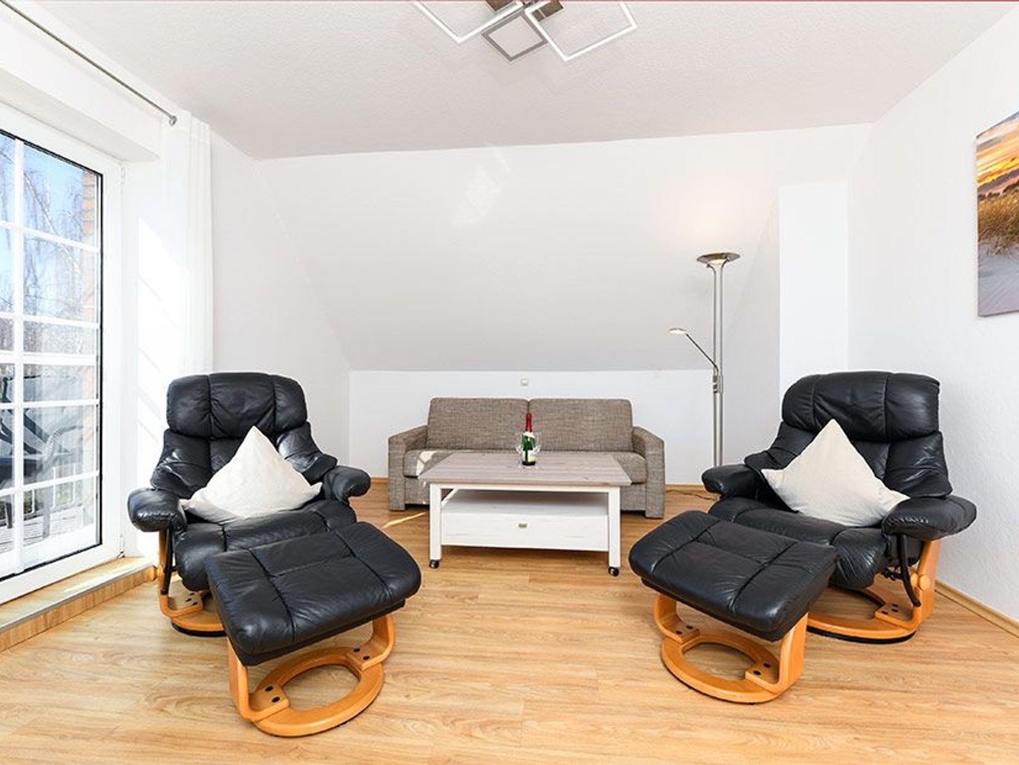 Größe ca. 55 Quadratmeter, Wohn- und Schlafraum, Küche, Schlafzimmer, Badezimmer mit Dusche, Waschtisch und WC, Obergeschoss, Terrasse im Garten, Balkon, Wintergarten am Garten, optimal für 2 bis 4 Personen und zusätzlich ein Kleinkind.