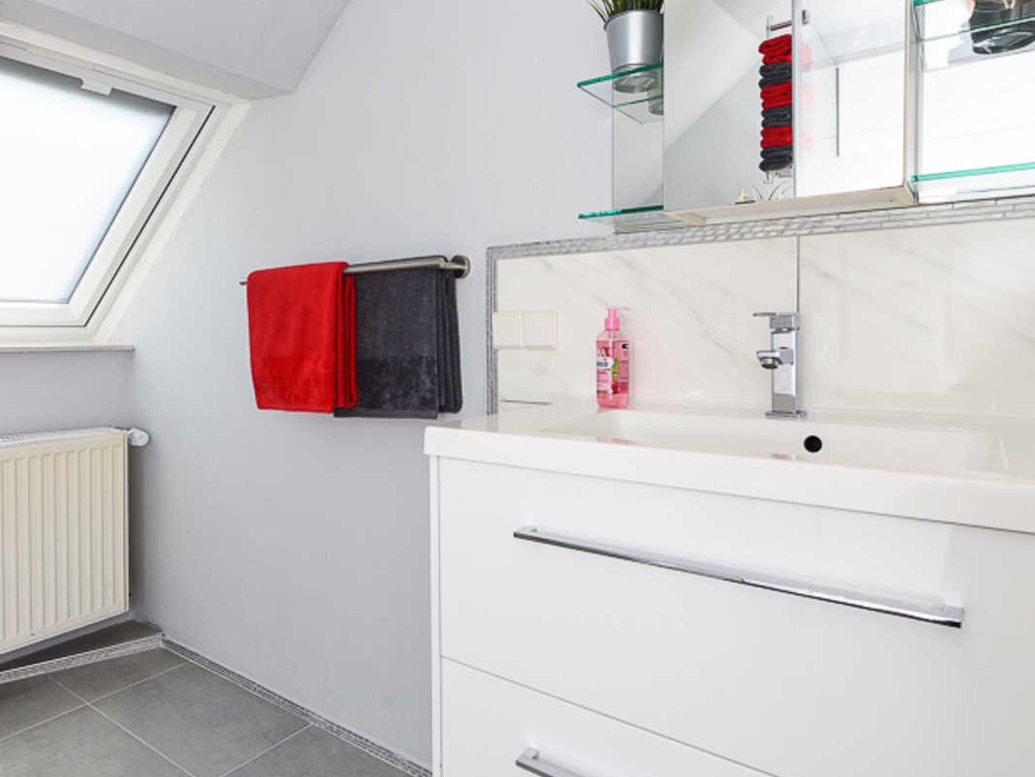 Die Schlafräume 2 und 3 befinden sich außerhalb der eigentlichen Ferienwohnung und werden über den Hausflur erreicht, der allerdings wiederum ausschließlich von den Gästen bewohnt wird.