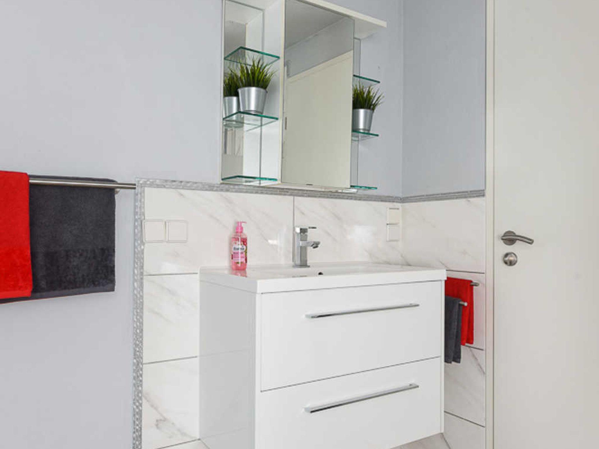 In Schlafzimmer 2 befindet sich ein Bett, das ausgeklappt mit 160 cm breit ist. In Schlafzimmer 3 befindet sich ein Bett, das ausgeklappt mit 140 cm breit ist.