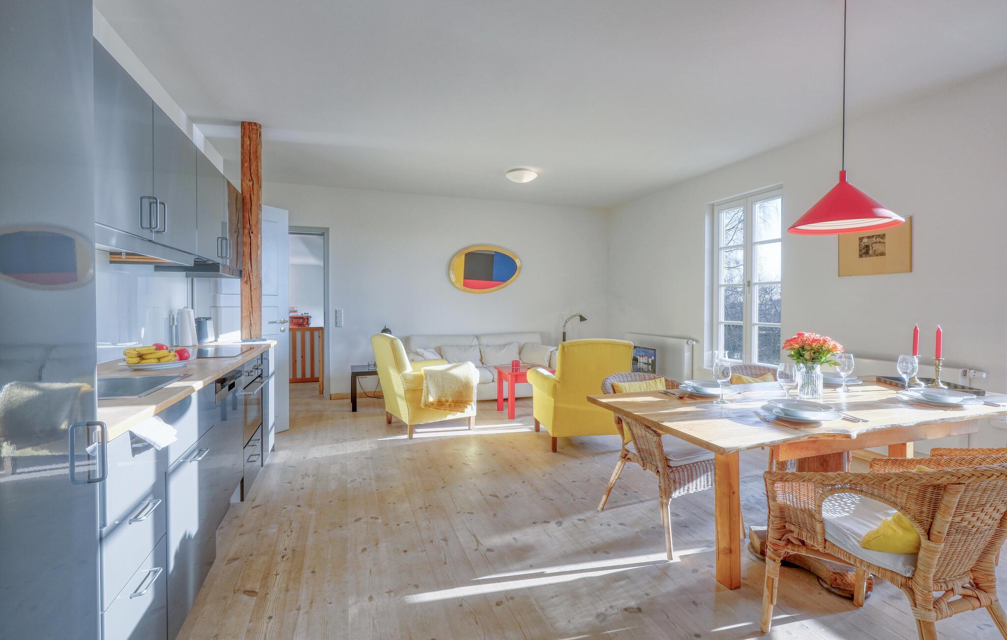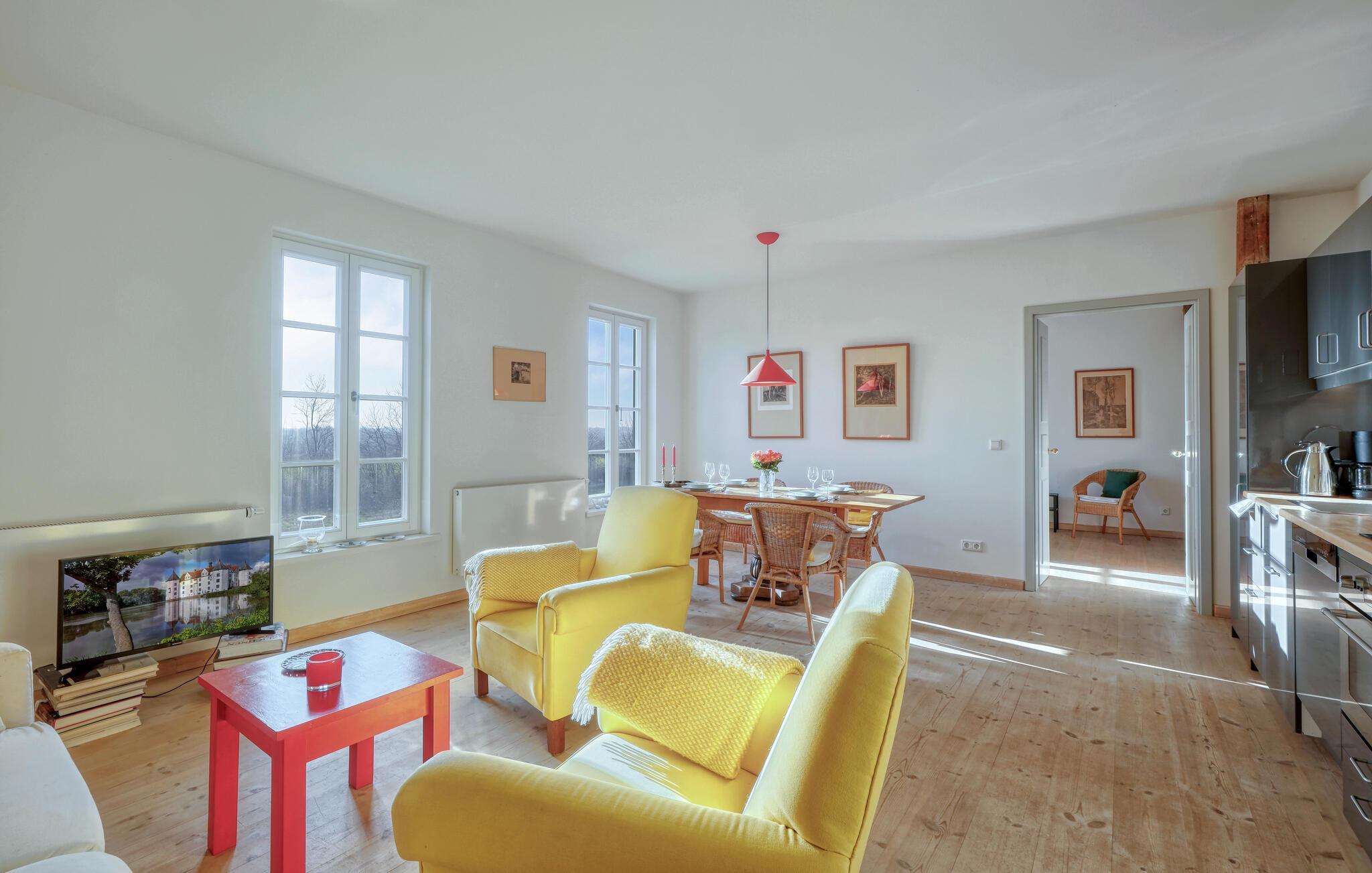 Glæd jer til livet på landet i denne smagfulde og store ferielejlighed.