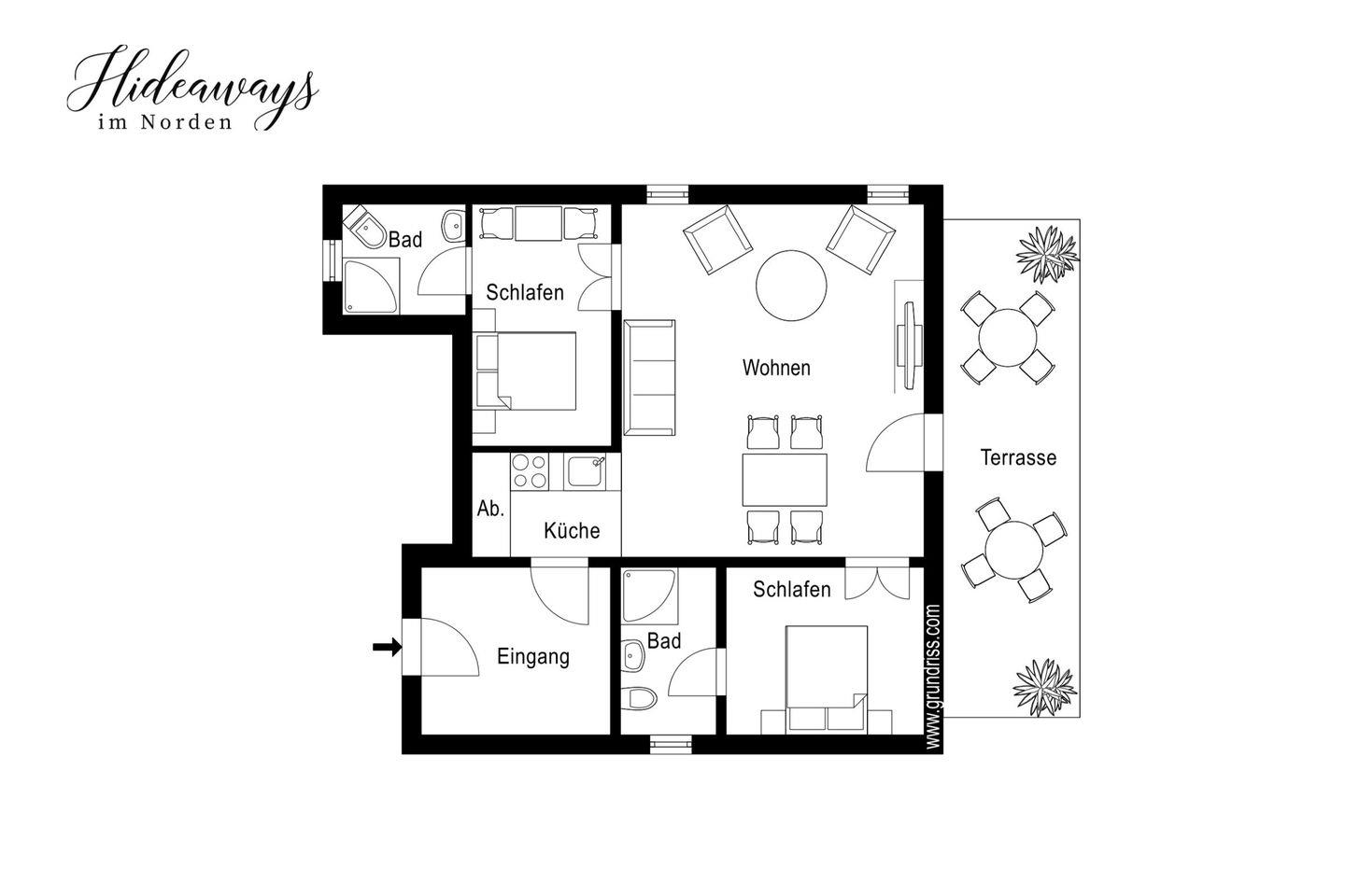 Diese Erdgeschosswohnung auf dem Hof Kiekut ist die größte der Anlage und überzeugt durch viel Raum, Licht und eine ruhige Lage. Die nach Südwesten ausgerichtete Wohnung bietet auf rund 120 m² beste Voraussetzungen für einen entspannten Aufenthalt – ideal für Familien, Paare mit Besuch oder kleine Freundesgruppen. Die Wohnung ist für bis zu vier Personen ausgelegt.