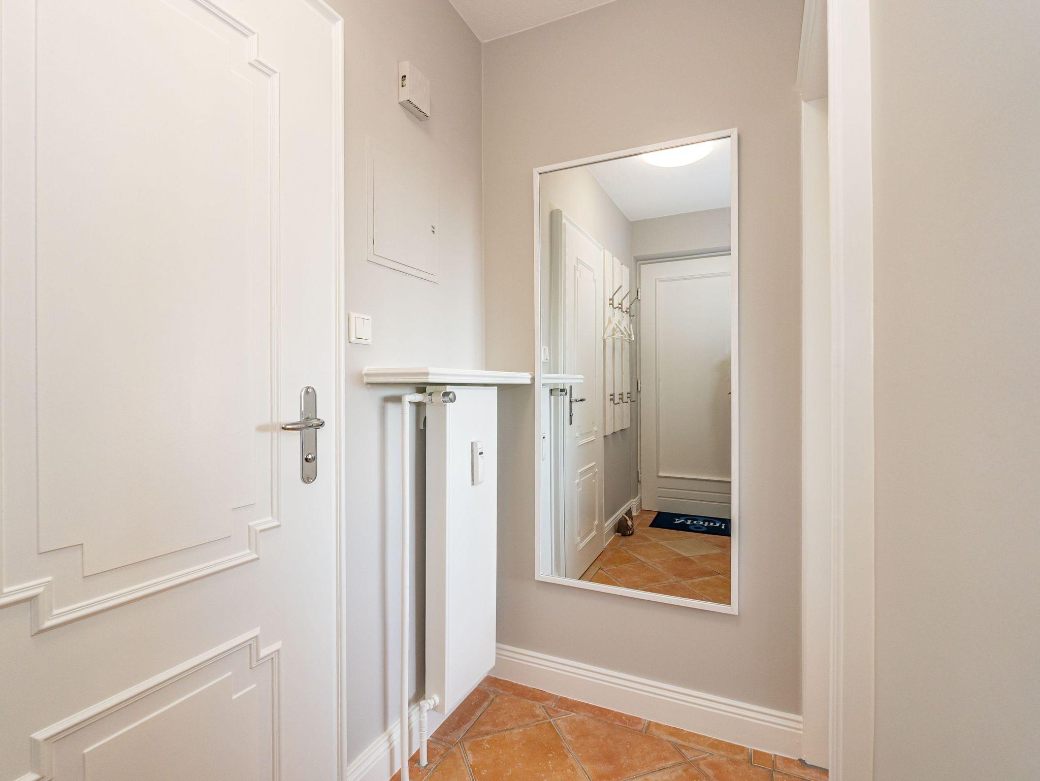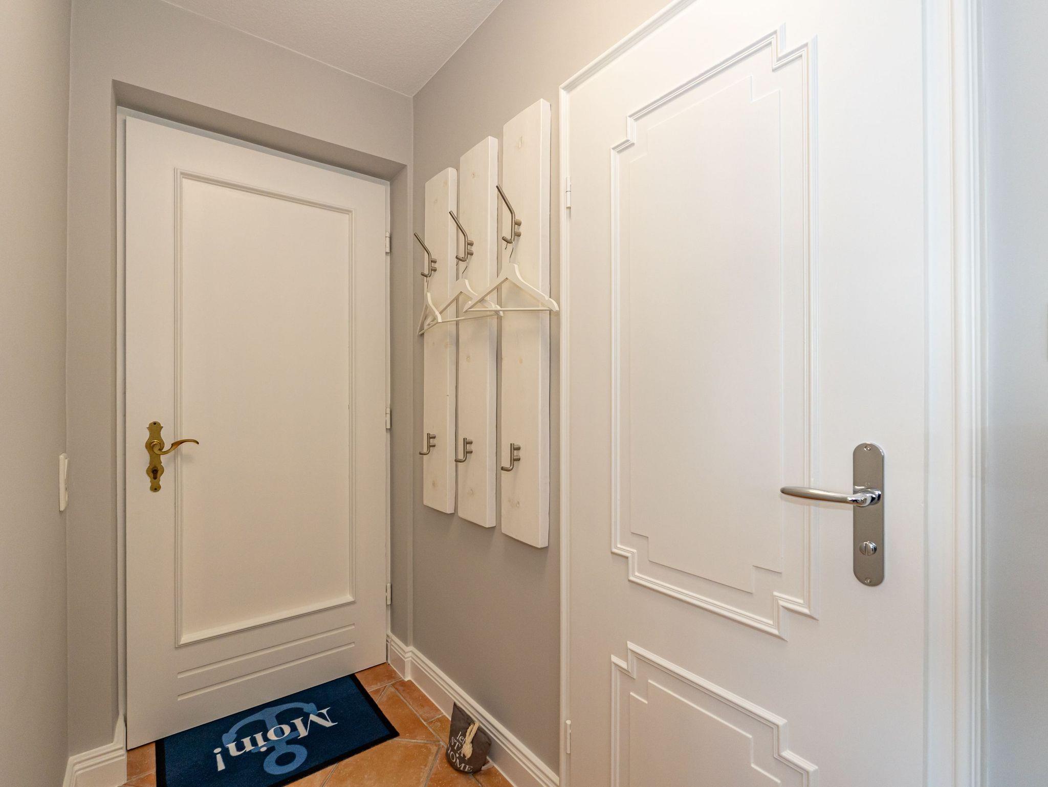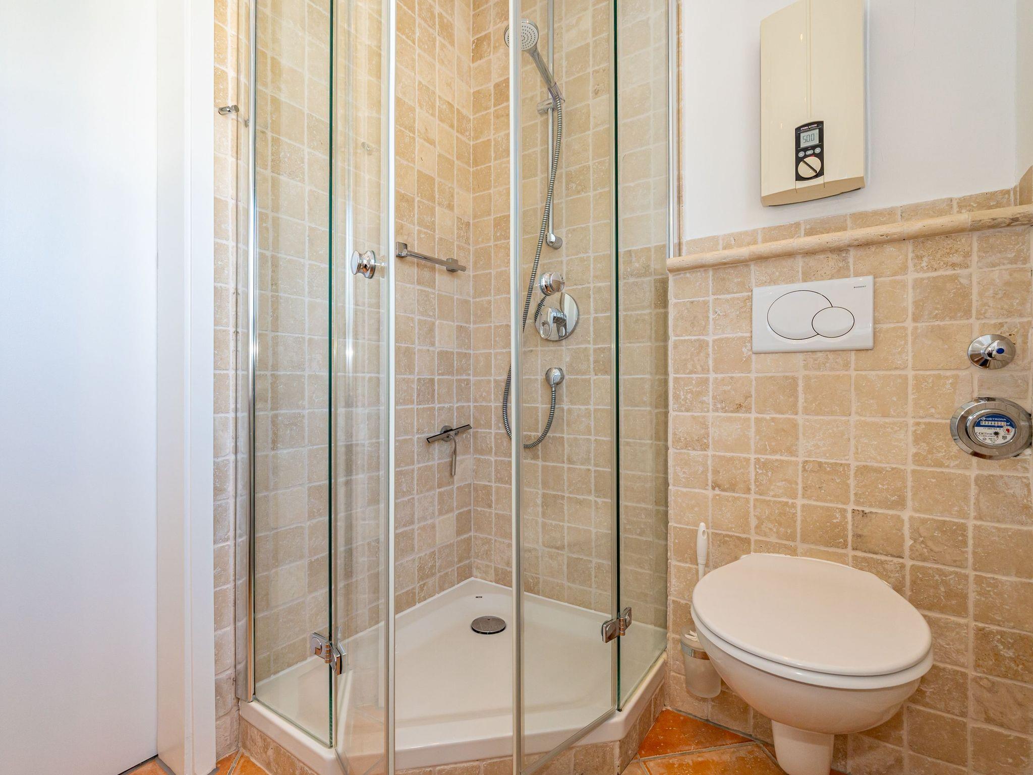 Das neuwertige Badezimmer mit Natursteinboden mit Dusche (extraflacher Einstieg), Waschtisch, Handtuchtrockner, Fön, WC und Fenster lässt Sie perfekt in den Urlaubstag starten. Über eine bequem begehbare Treppe gelangen Sie auf die offene Empore, die mit Teppichboden ausgelegt ist und Ihnen mit einem großzügigen Kleiderschrank sowie kleineren Nebenschränken ausreichend Stauraum bietet ideal, um Koffer und weiteres Gepäck unterzustellen.