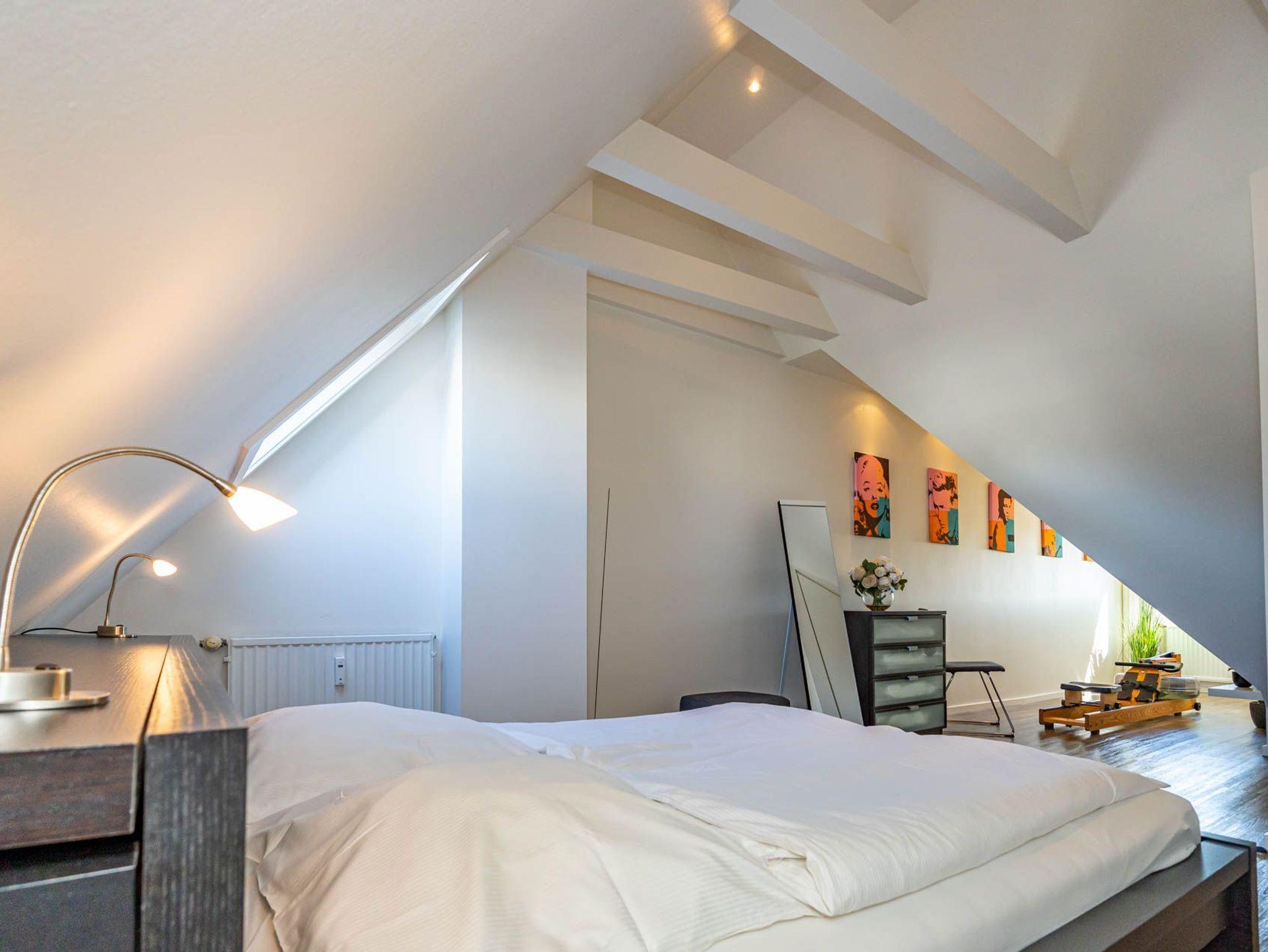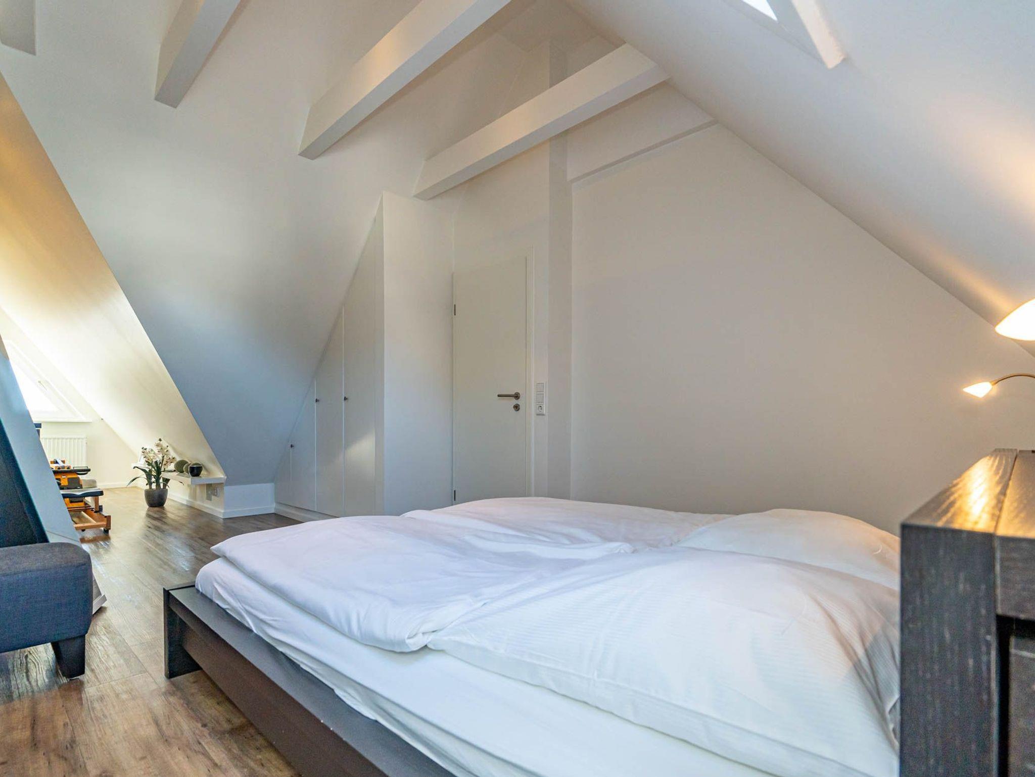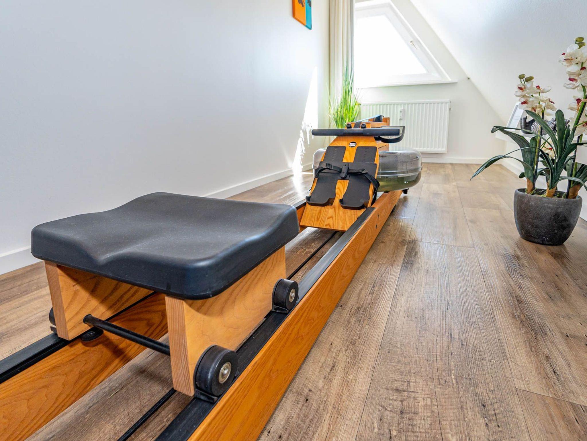 Das Schlafzimmer ist mit einem Doppelbett (1,60X2,00m) 2 Matratzen und einem Rudergerät der Firma Waterrower eingerichtet.