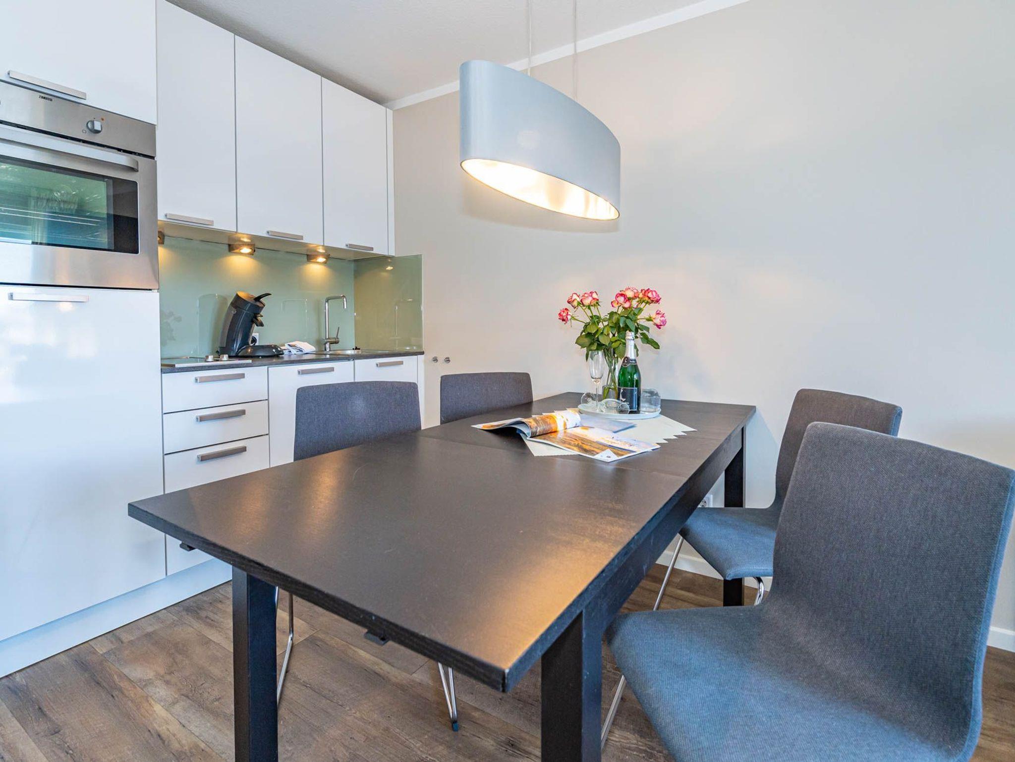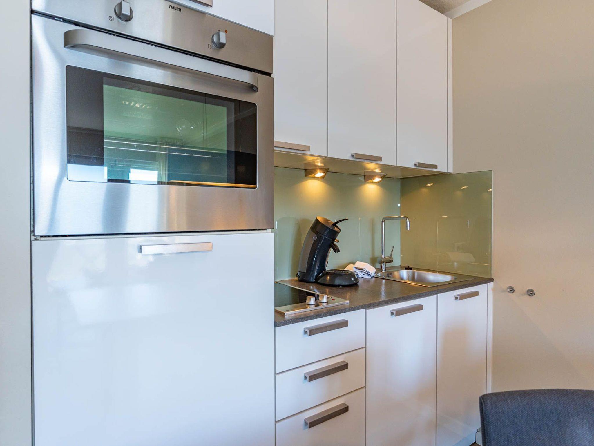 Die Küchenzeile hat einen Geschirrspüler, einen Backofen, ein 2-Platten-Ceranfeld, Nespresso-Maschine und Kühlschrank mit 3-Sterne-Gefrierfach. Kaffeemaschine, Wasserkocher und Toaster gehören zur Grundausstattung.