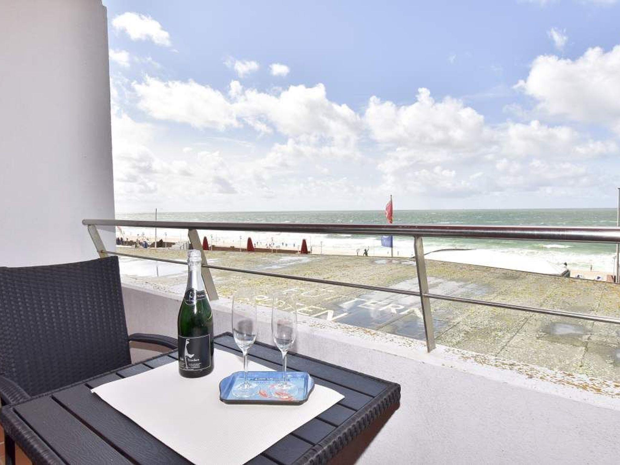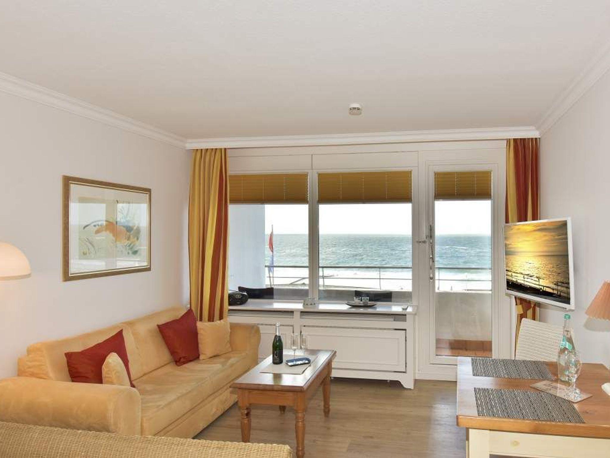 Hochwertig ausgestattete 1-Zimmer-Nichtraucher-Ferienwohnung (ca. 34 qm) in der 1. Etage zur Seeseite mit Westloggia und Meerblick (Nachmittagssonne, mit Balkonmöbeln und Auflagen) ideal für 2 Personen.