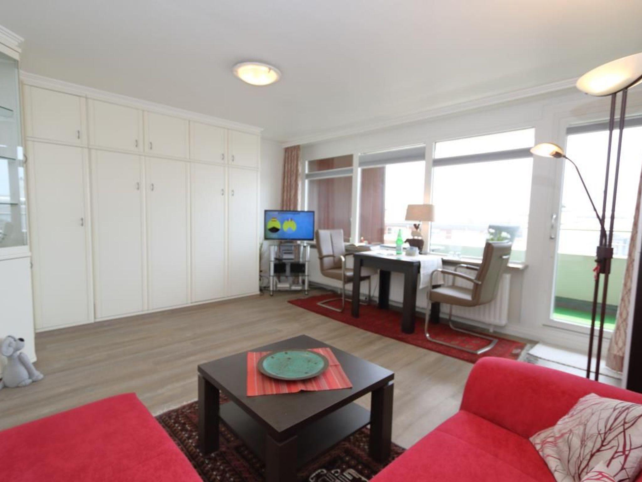 Freuen Sie sich auf ein schönes, aber auch modernes Appartement mit einer separaten Einbauküche, einem Badezimmer mit Glasduschkabine und einem ansprechenden Wohn-und Schlafbereich! Zudem verfügt die Ferienwohnung über einen Balkon, der sich in Richtung des Sonnenaufganges an der Seite der Andreas-Dirks-Straße/Ecke Friedrichstraße befindet. Mit Blick auf die „Art your life“ Residenz kann man hier schöne Stunden verbringen. Zudem hat der Balkon eine kleine Wäscheleine.