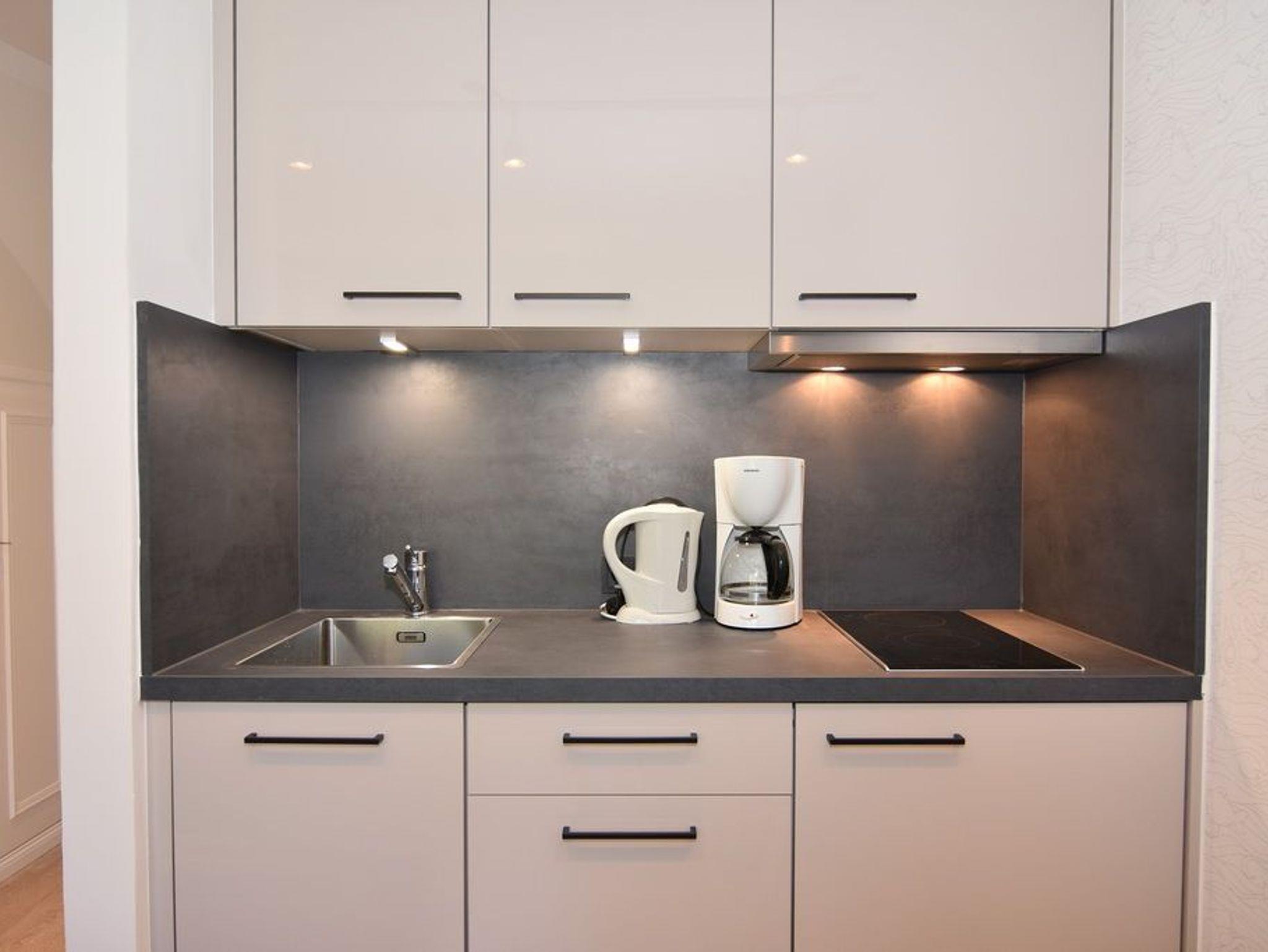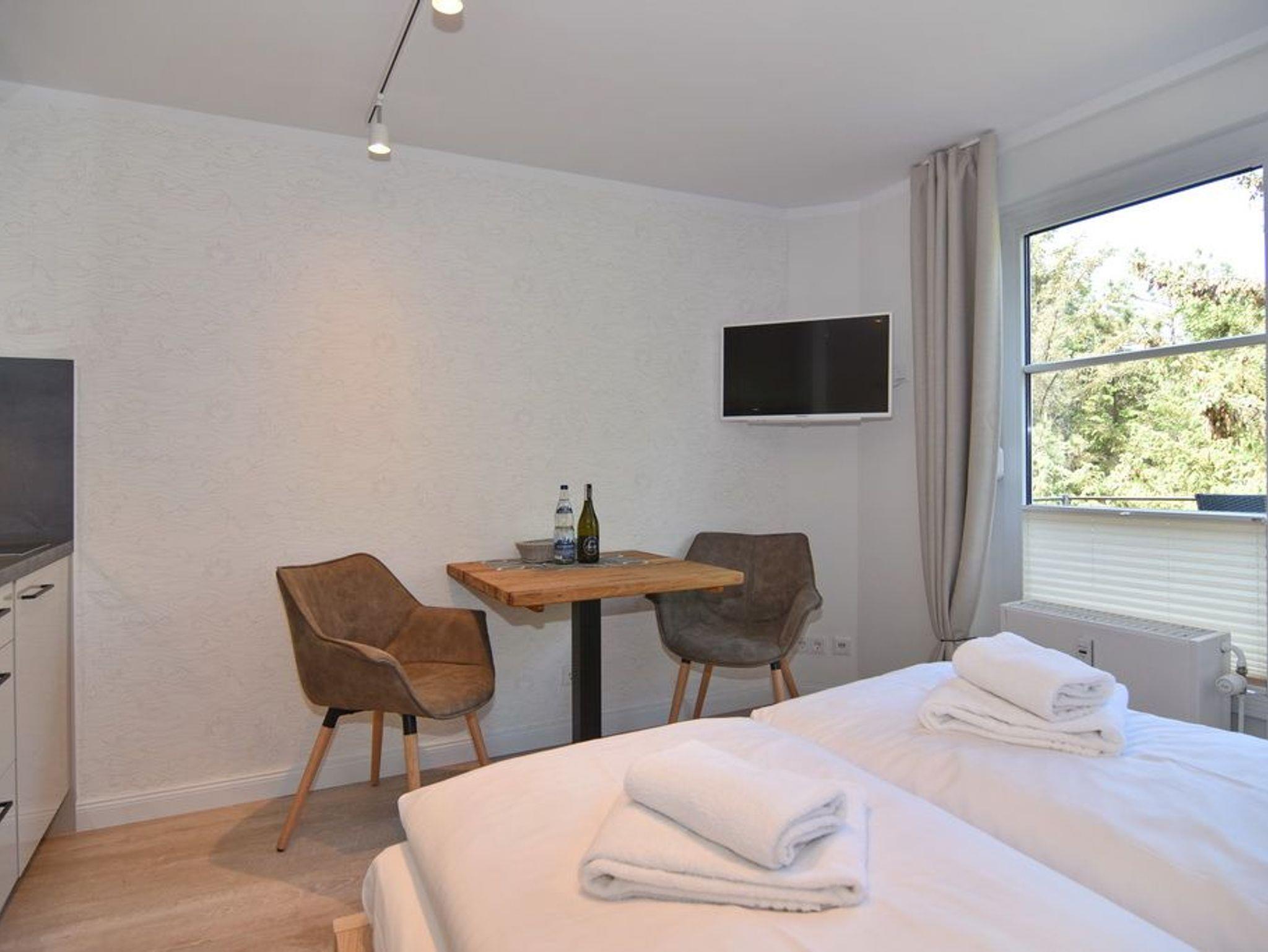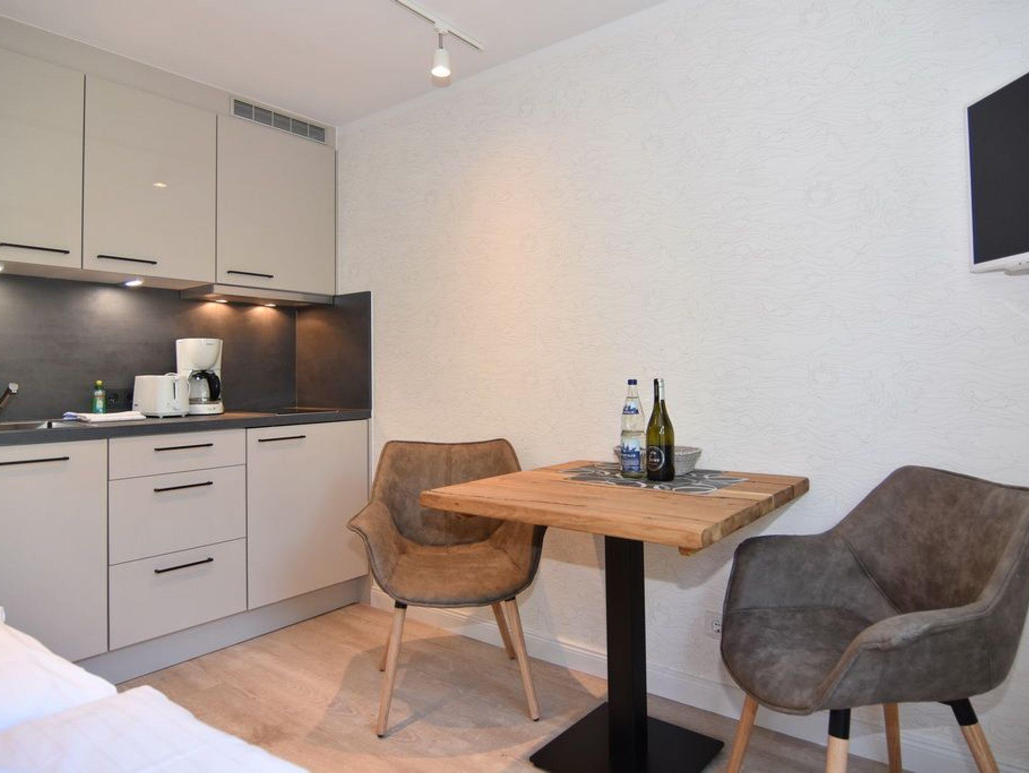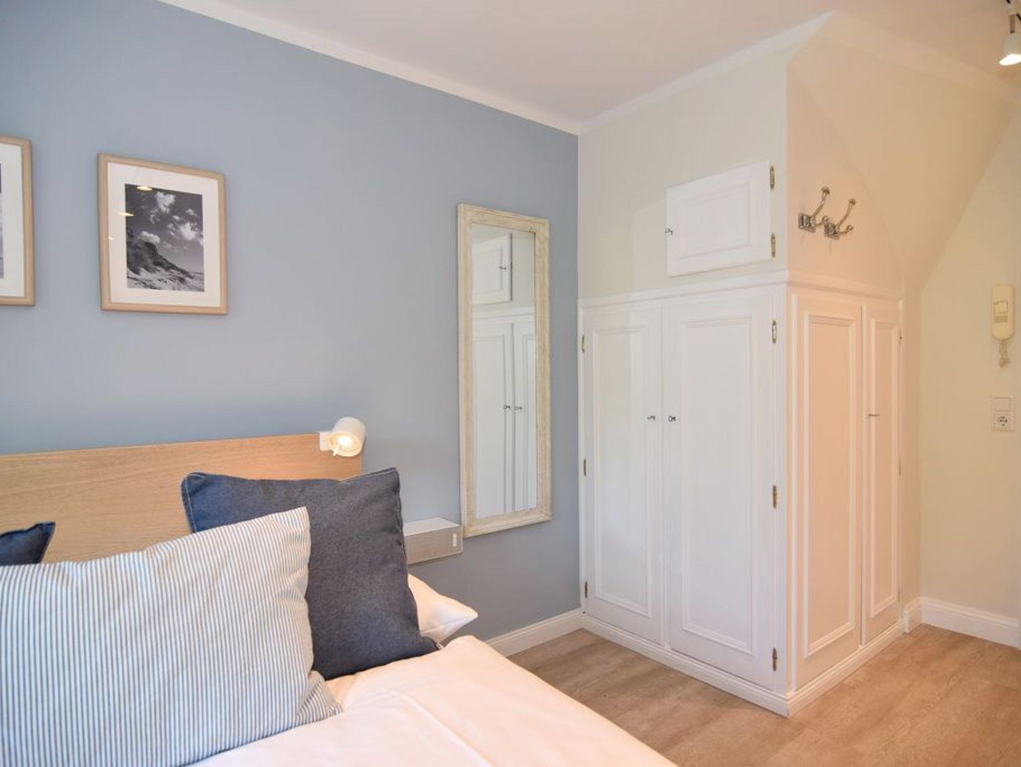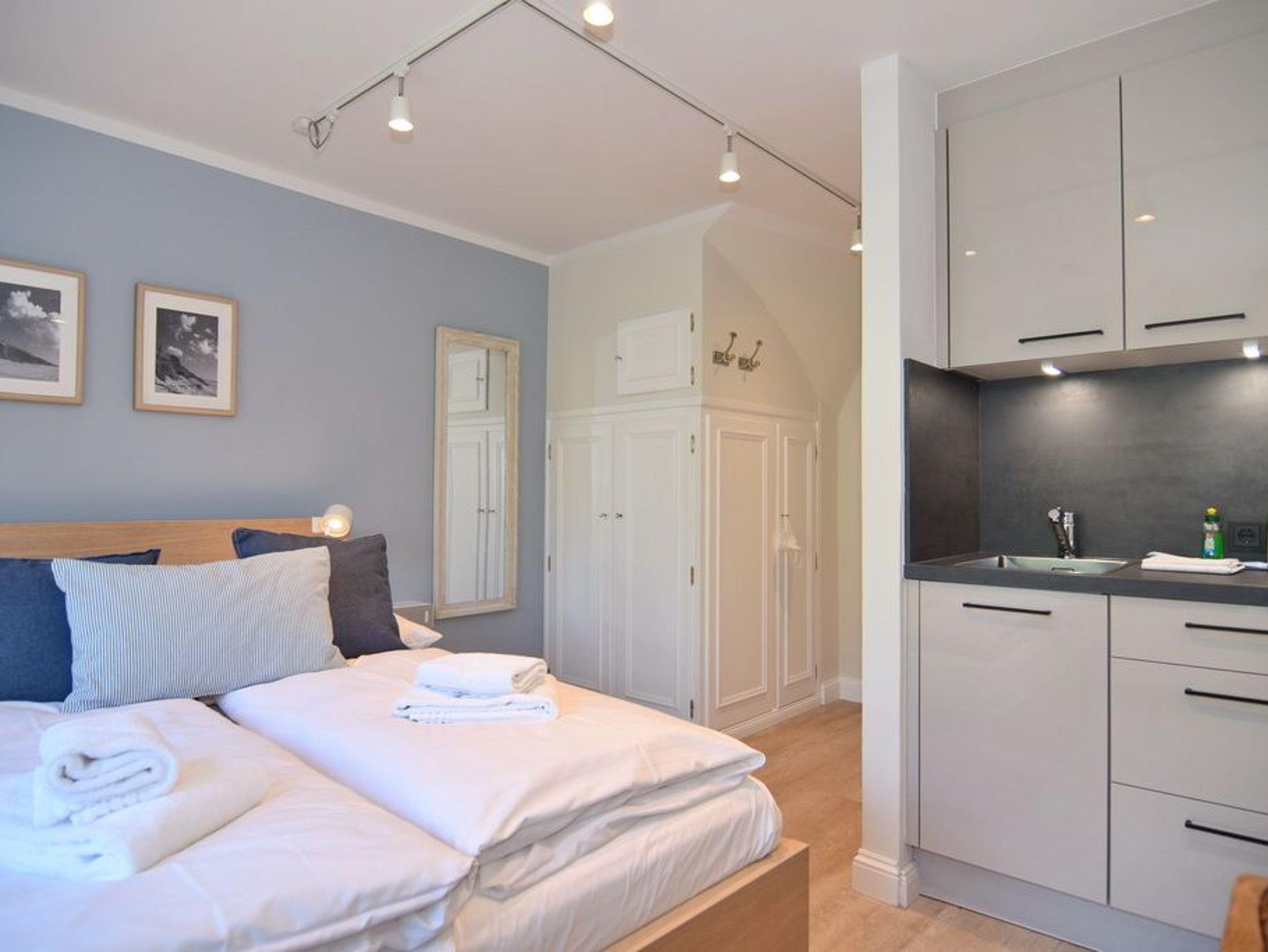 Schönes, modernes 1-Zimmer-Apartment im 1. OG mit sonnigem Westbalkon und Blick auf den Dünenkamm im Haus Lee, ca. 25 m², Nichtraucher. Wohn-/Schlafzimmer mit festem Doppelbett (140x200), Einbauschränken und integrierter, kleiner Küchenzeile, Essplatz für 2 Personen, Einbauschrank, Duschbad/WC. Flat-TV (Radiosender integriert), W-LAN (ohne Gewähr). Tierhaltung ist nicht gestattet. Schwimmbad und finnische Sauna. Garage Nr. 11 kann kostenlos dazugebucht werden. Münzwaschmaschine und -trockner. Bettwäsche und Handtücher sind zur Anreise aufgezogen!