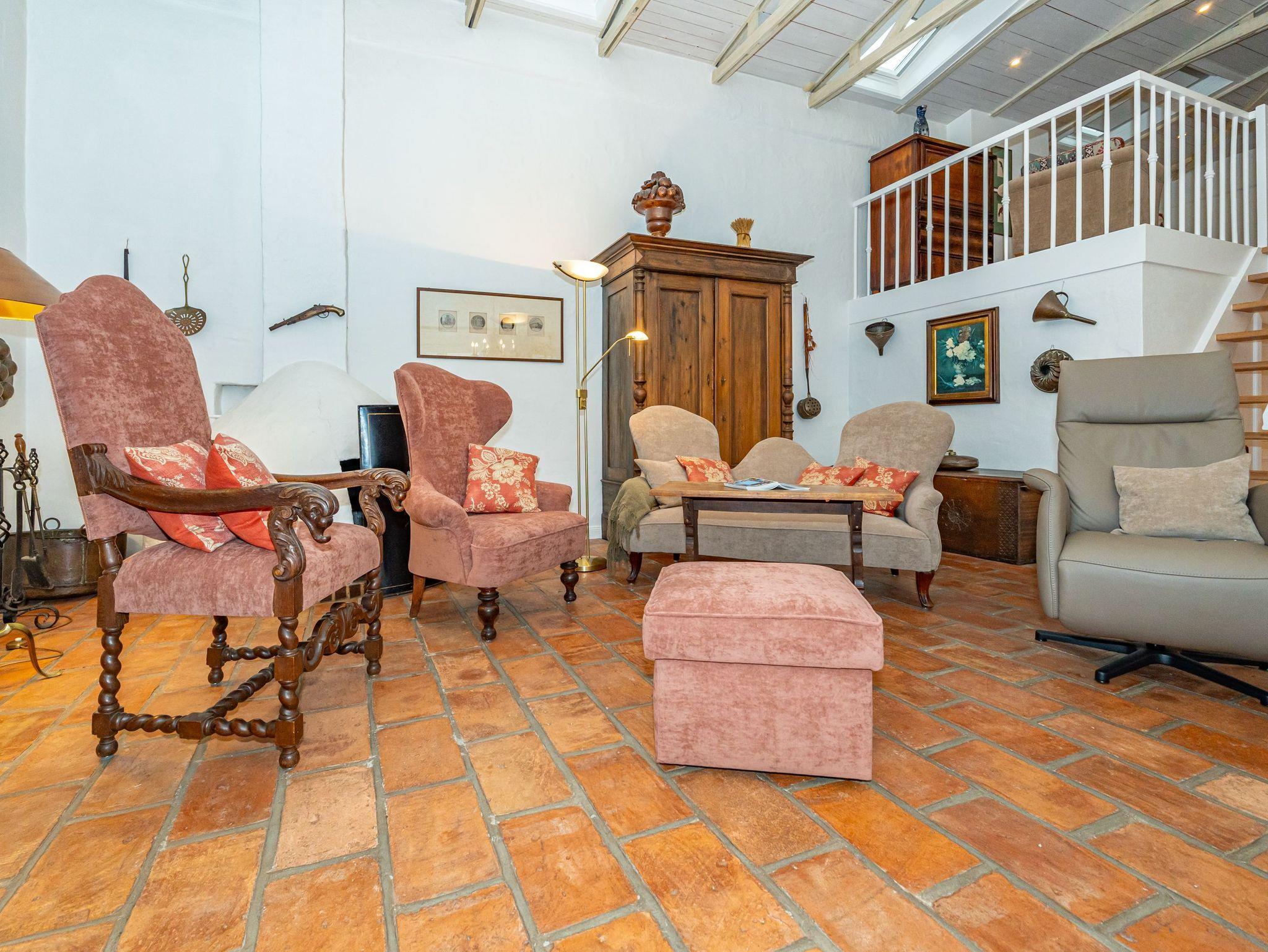 Im Wohnzimmer befinden sich eine Couch und zwei Sessel vor dem Kamin, eine Essecke, Kabel-TV, Stereoanlage, DVD-Player, Telefon mit Internetflatrate (DSL).