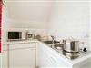 Appartement im Obergeschoss für 2 Personen. Geräumiges Wohn-Esszimmer mit Doppel-Schrankbett, Essecke, Sitzgarnitur, Flachbild TV. Separate Küche mit 2 Plattenkochherd, Kühlschrank mit Gefrierfach, Mikrowelle, Kaffeemaschine, Toaster, Wasserkocher, Geschirr und Töpfe. Badezimmer mit Dusche, WC, Waschbecken, Handtuchtrockner und Fön.
