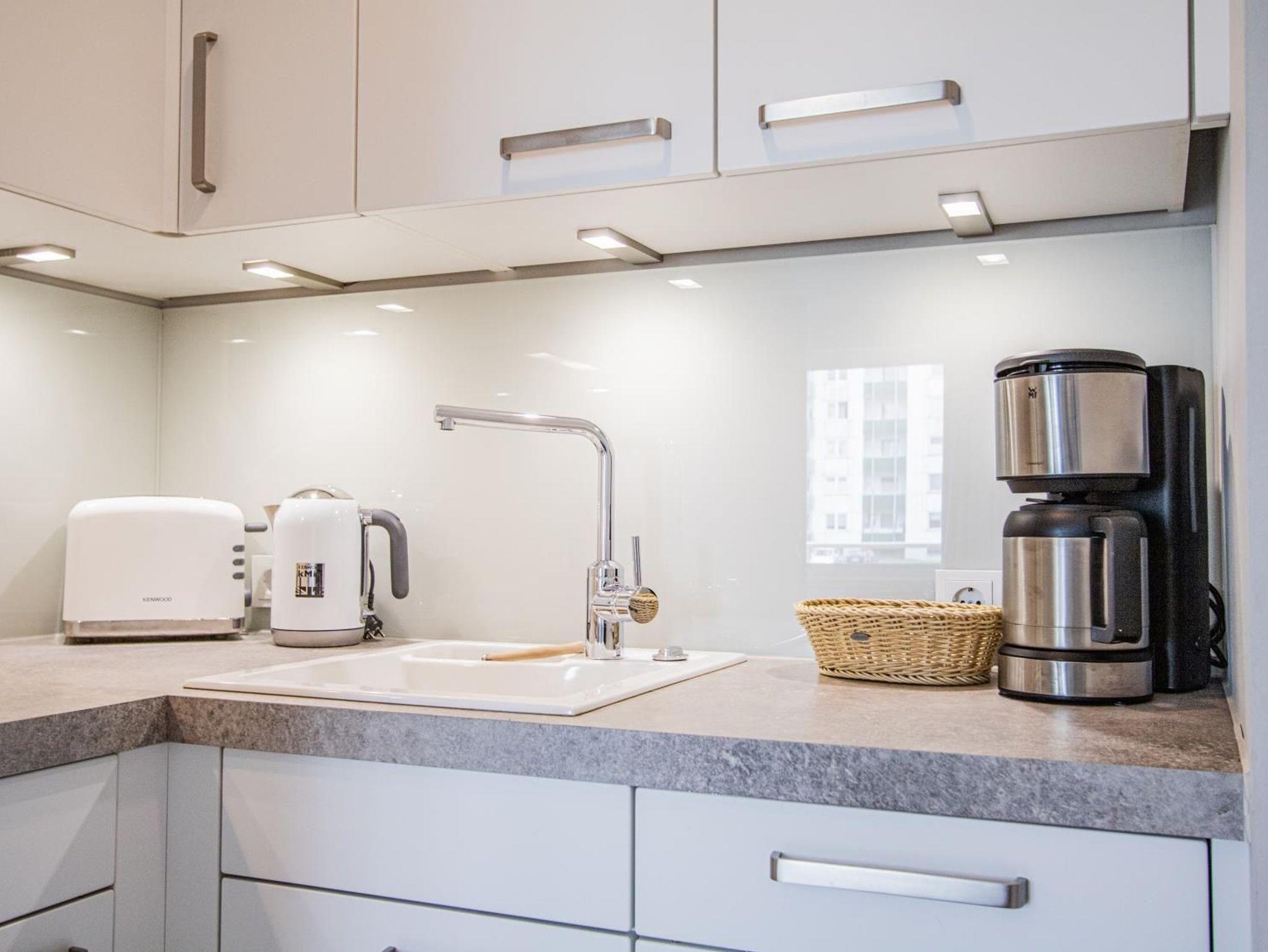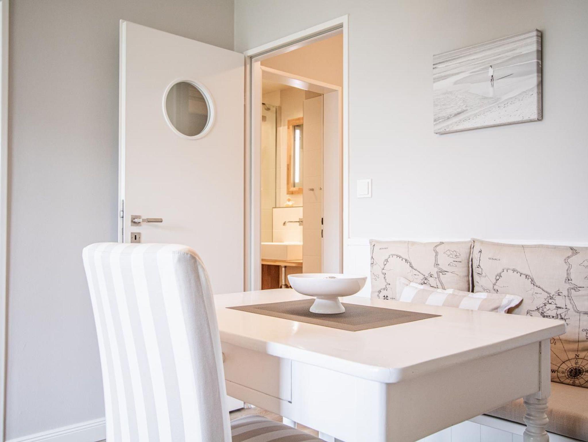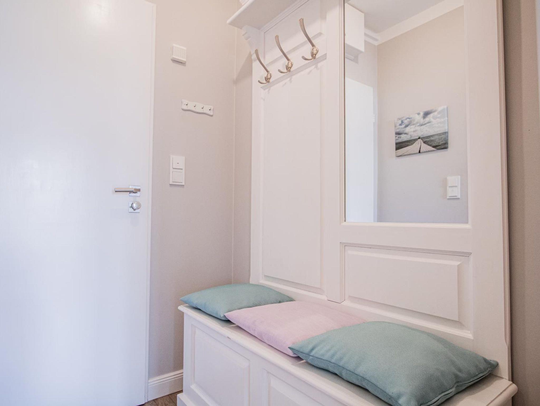 Hochwertig und geschmackvoll eingerichtetes 2-Zimmer-Appartement im Süden von Westerland in sehr ruhiger Lage. Im separaten Schlafzimmer befinden sich 2 Einzelbetten und ein großer, geräumiger Einbauschrank. Im Wohnzimmer ist ein Schlafsofa und der Zugang zum Westbalkon. Das Besondere im Wohnzimmer ist ein elektrischer Kamin. Die offene Küche ist komplett ausgestattet mit u. a. Spülmaschine und Mikrowelle mit Backfunktion.