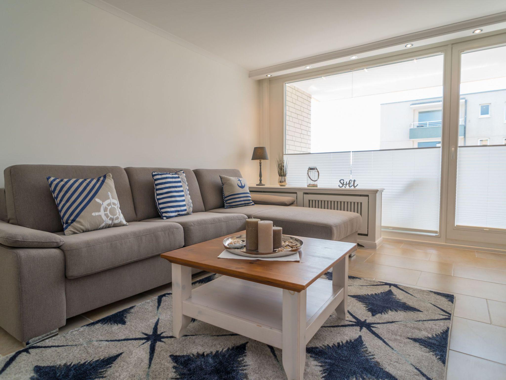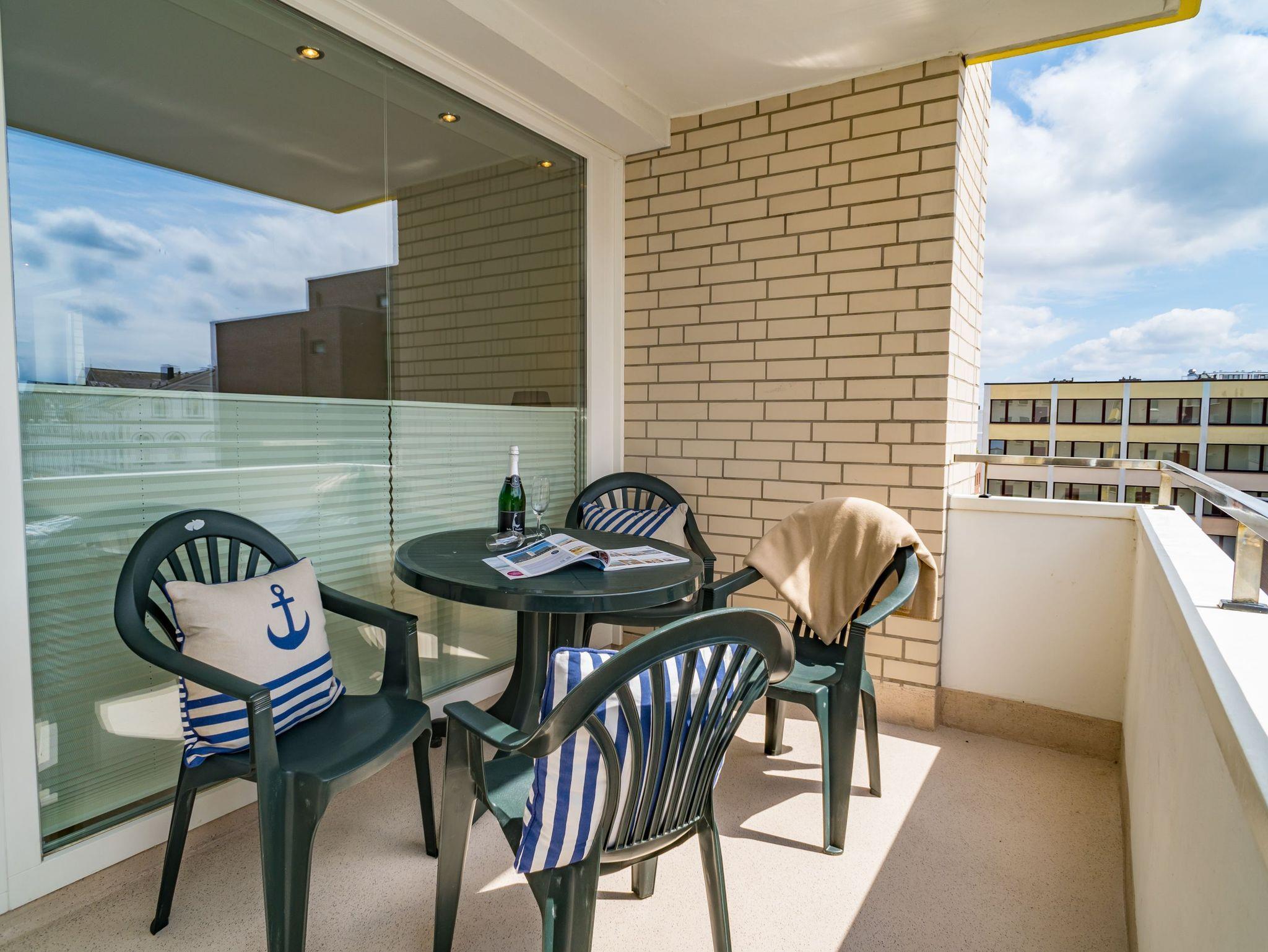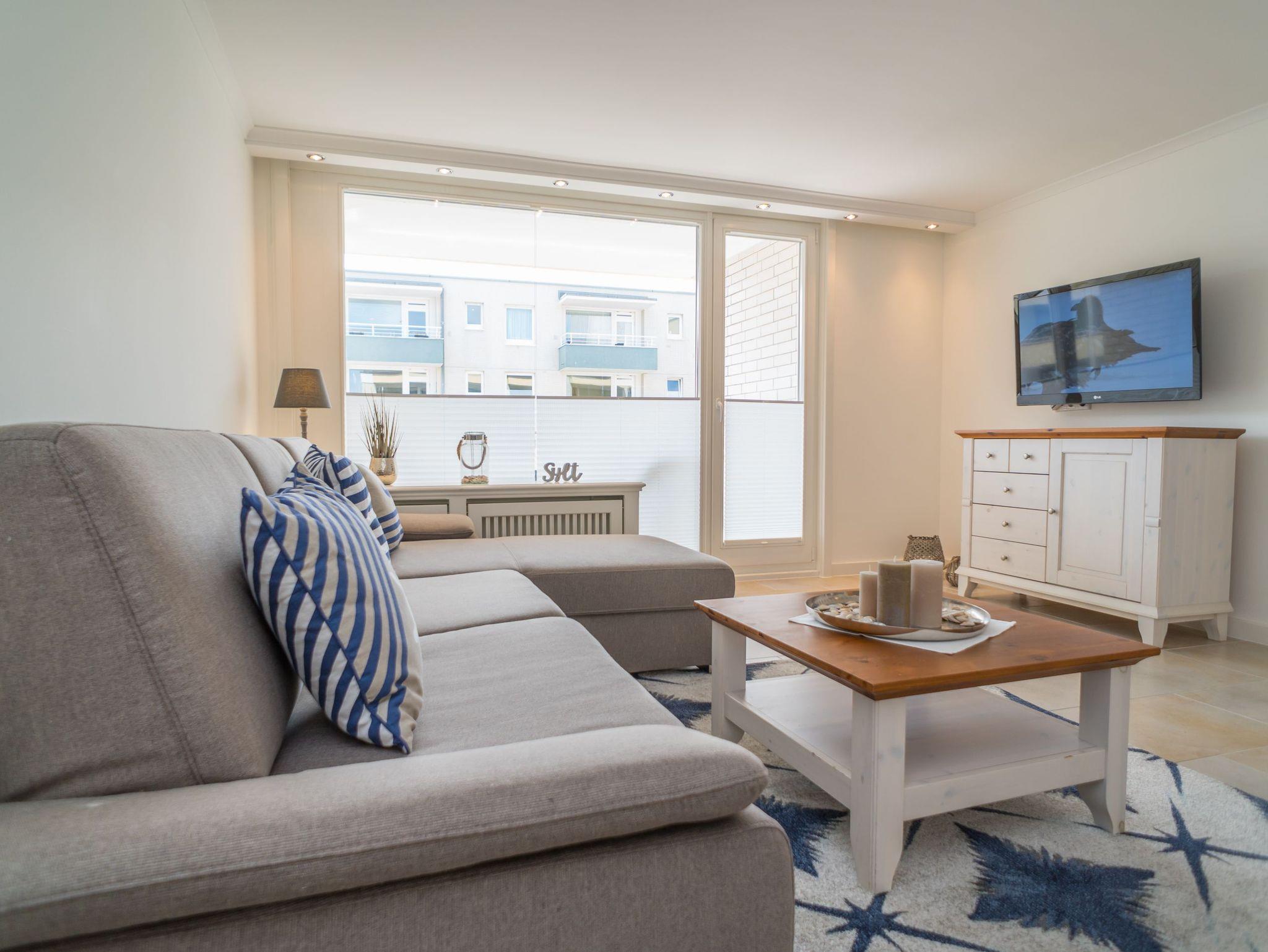 Hell und freundlich eingerichtete 2-Zimmer-Nichtraucher-Ferienwohnung (ca. 56 m²), 2020 renoviert, in der 3. Etage zur Südseite mit Südbalkon (mit Balkonmöbeln und Auflagen) für max. 4 Personen.