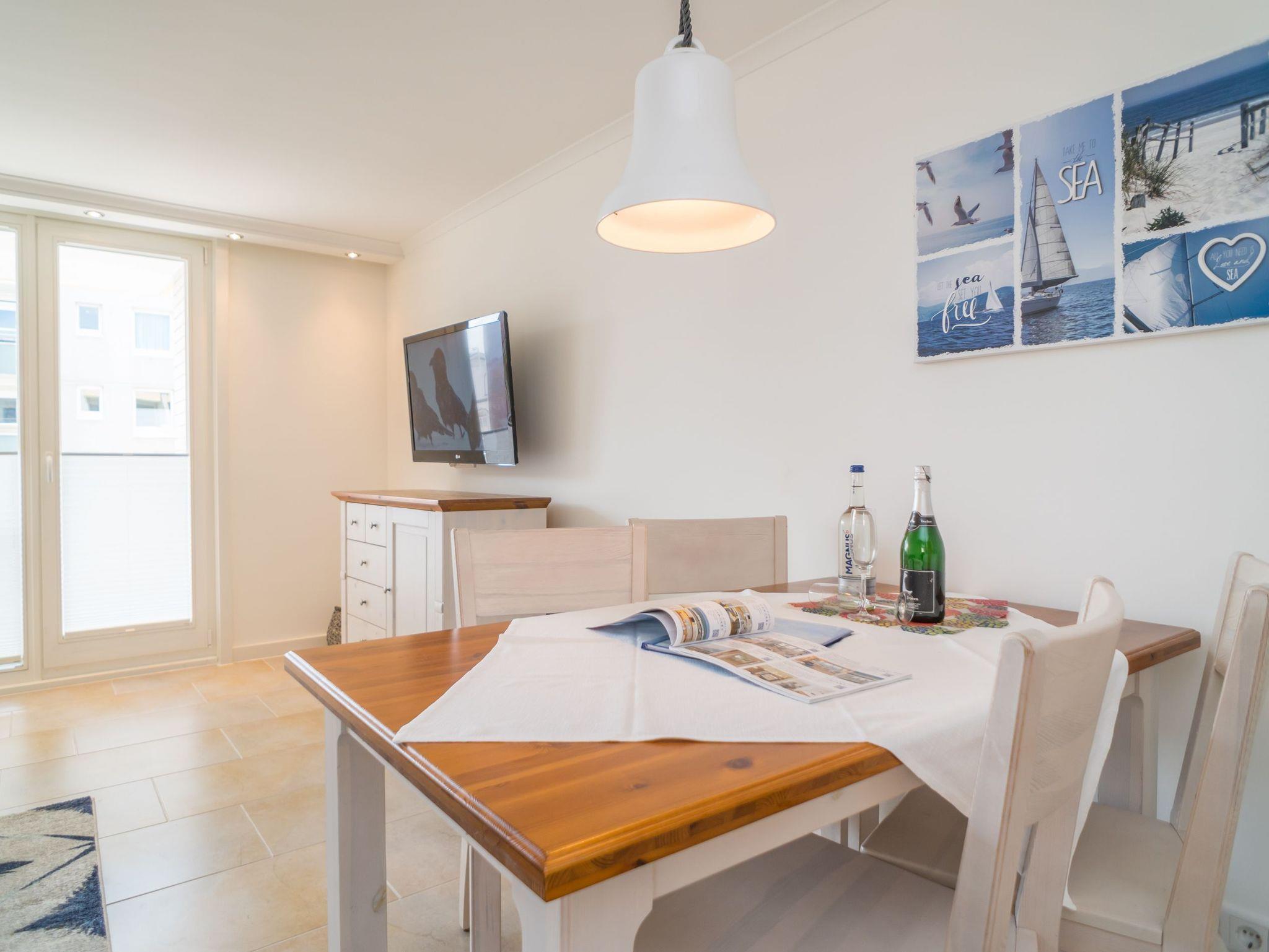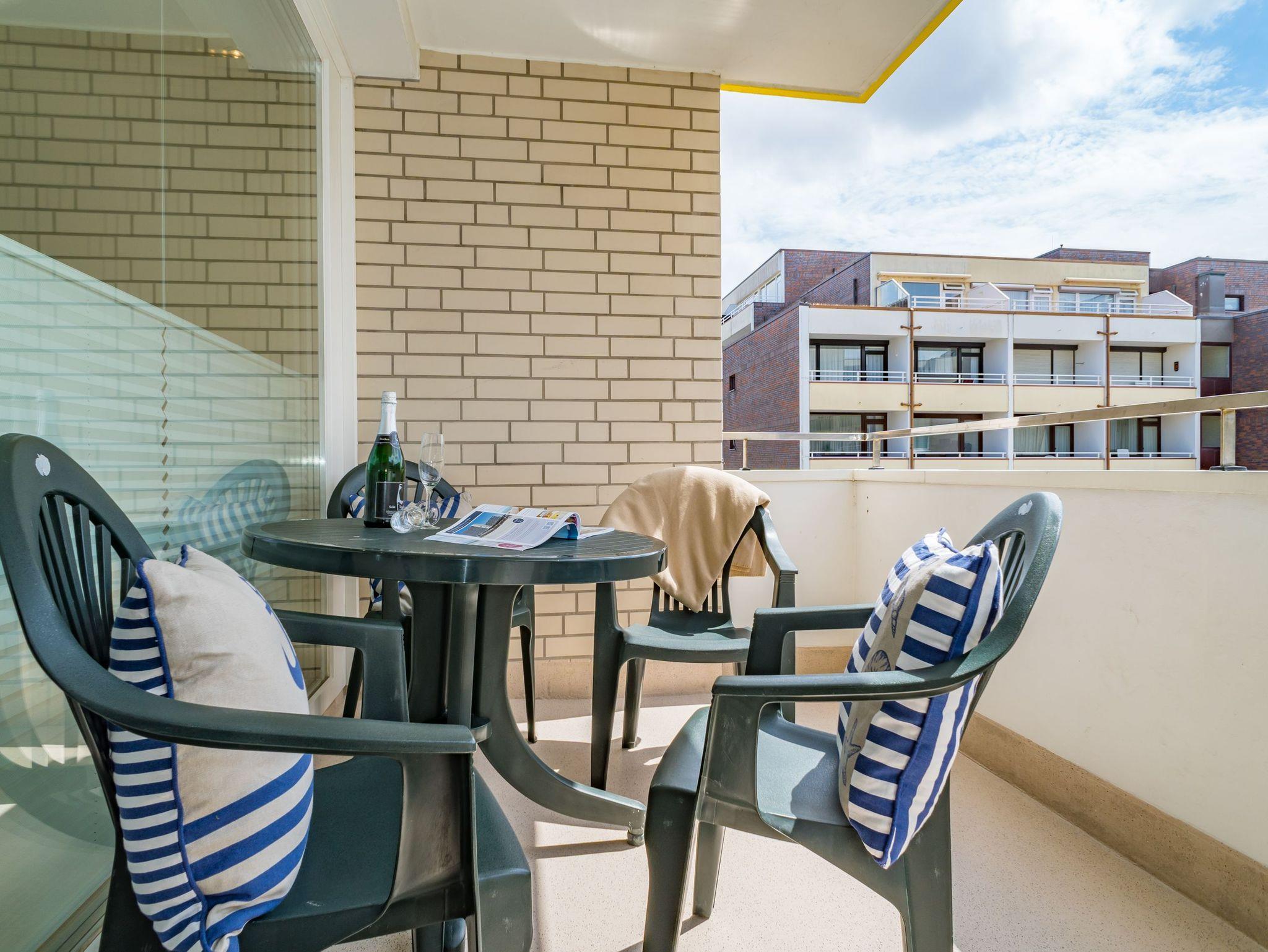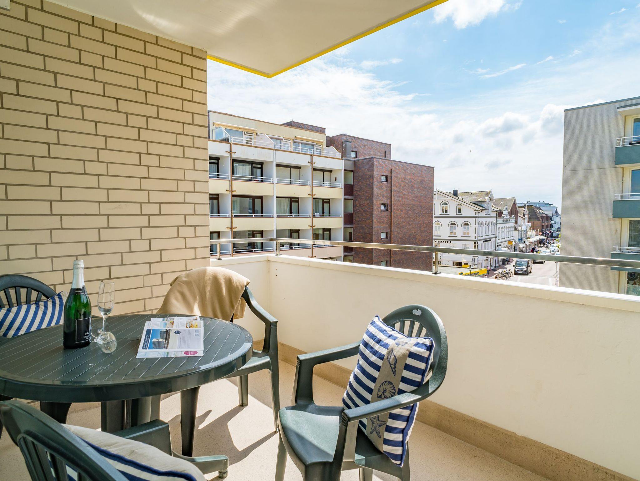 Hell und freundlich eingerichtete 2-Zimmer-Nichtraucher-Ferienwohnung (ca. 56 m²), 2020 renoviert, in der 3. Etage zur Südseite mit Südbalkon (mit Balkonmöbeln und Auflagen) für max. 4 Personen.