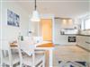 Die separate Küche hat ein Fenster, einen Herd mit Mikrowellenkombi und ein 4-Platten-Kochfeld, einen Geschirrspüler und einen Kühlschrank mit 3*-Gefrierfach. Kaffeemaschine, Nespresso-Maschine, Wasserkocher und Toaster gehören zur Grundausstattung.