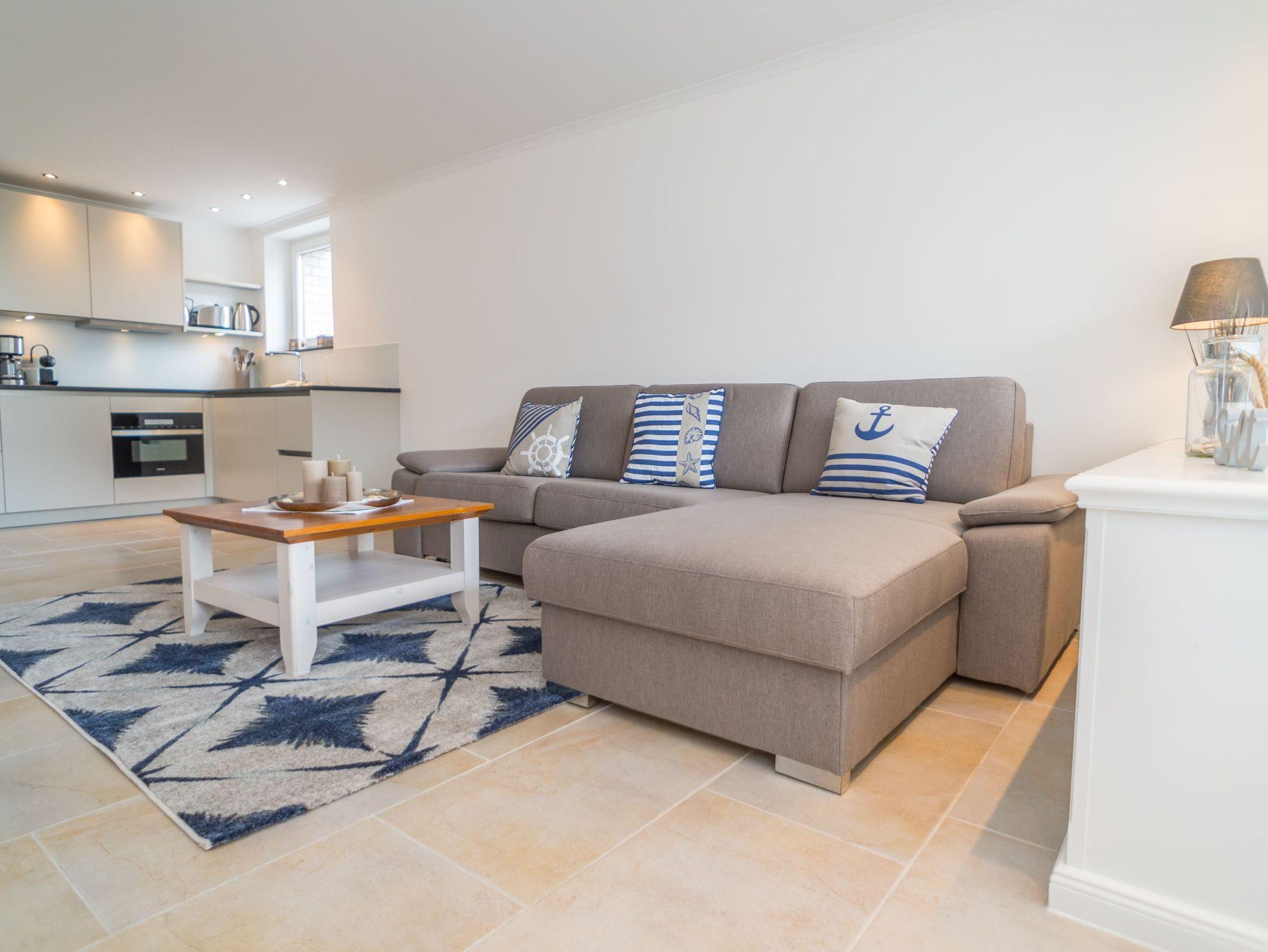 Der Wohnraum besteht aus einer 3-Sitzer-Couch mit Schlaffunktion, einem Essplatz, einem Sat-Flachbild-TV (HD-Ready mit digitalem Empfang mit ca. 60-100 Radio- und Fernsehprogrammen), einem DVD-Player, Radio und Telefon.