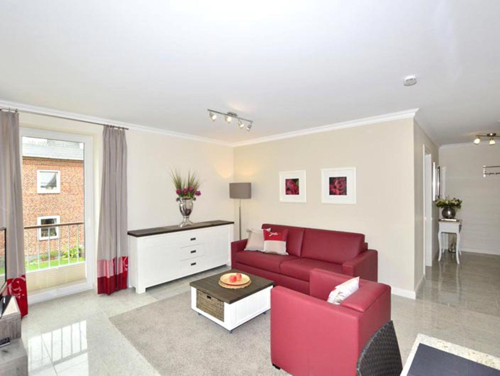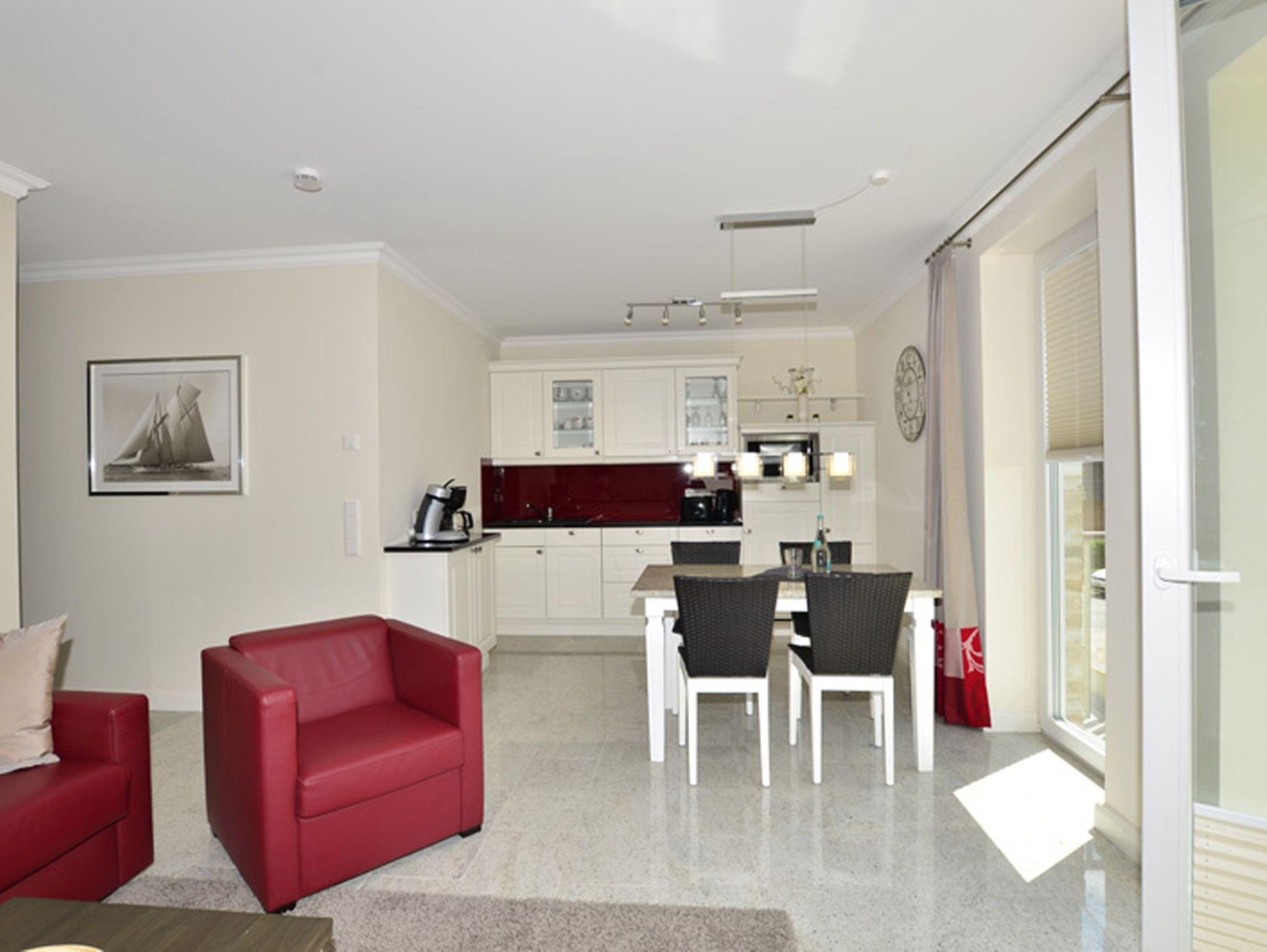 Diese stilvoll eingerichtete 2-Zimmer-Nichtraucherwohnung befindet sich im 1. Obergeschoss eines Neubaus und bietet auf ca. 58 m² Wohnfläche höchsten Komfort für bis zu vier Personen. Großformatige Fliesen, Fußbodenheizung und eine geschmackvolle Ausstattung schaffen ein elegantes, behagliches Wohnambiente. Zwei Balkone einer nach Süden, der andere nach Westen ausgerichtet laden dazu ein, den Tag in der Sonne zu beginnen oder ihn entspannt bei Nachmittagssonne ausklingen zu lassen. Hochwertige Balkonmöbel mit Auflagen sind selbstverständlich vorhanden.