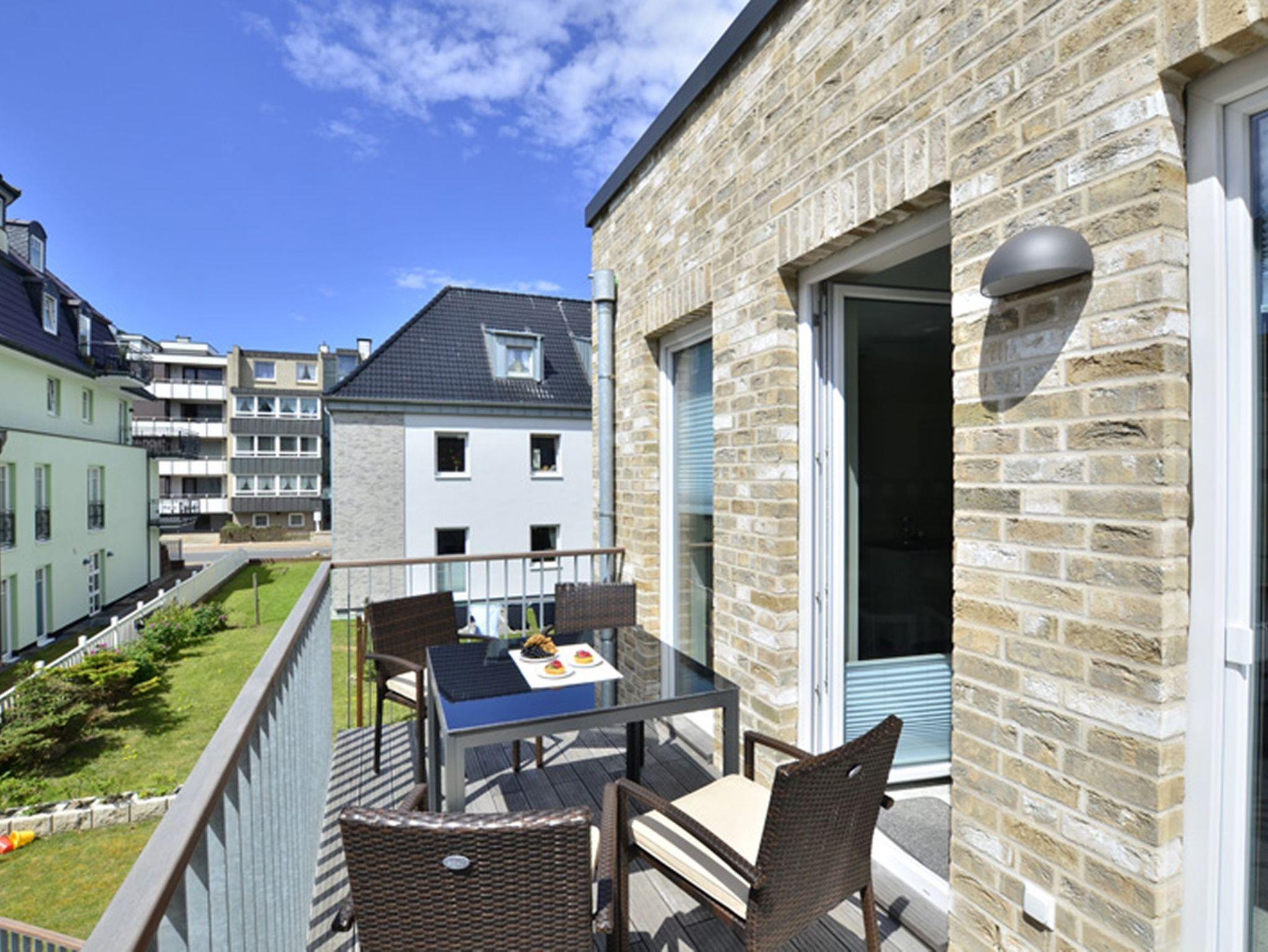Diese stilvoll eingerichtete 2-Zimmer-Nichtraucherwohnung befindet sich im 1. Obergeschoss eines Neubaus und bietet auf ca. 58 m² Wohnfläche höchsten Komfort für bis zu vier Personen. Großformatige Fliesen, Fußbodenheizung und eine geschmackvolle Ausstattung schaffen ein elegantes, behagliches Wohnambiente. Zwei Balkone ? einer nach Süden, der andere nach Westen ausgerichtet ? laden dazu ein, den Tag in der Sonne zu beginnen oder ihn entspannt bei Nachmittagssonne ausklingen zu lassen. Hochwertige Balkonmöbel mit Auflagen sind selbstverständlich vorhanden.