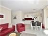 Der Wohnbereich ist hochwertig möbliert und bietet mit einer komfortablen Doppelschlafcouch (Liegefläche 1,80 x 1,90 m), einem Sessel, einem gemütlichen Essplatz, Kabel-Flachbild-TV, Stereoanlage sowie WLAN (ohne Gewähr) den idealen Rahmen für entspannte Urlaubstage.