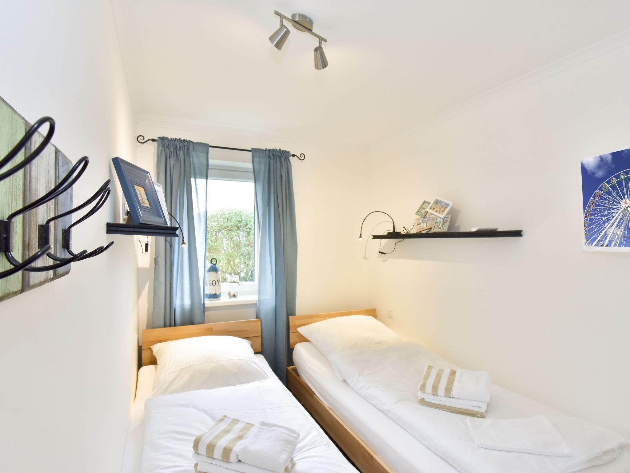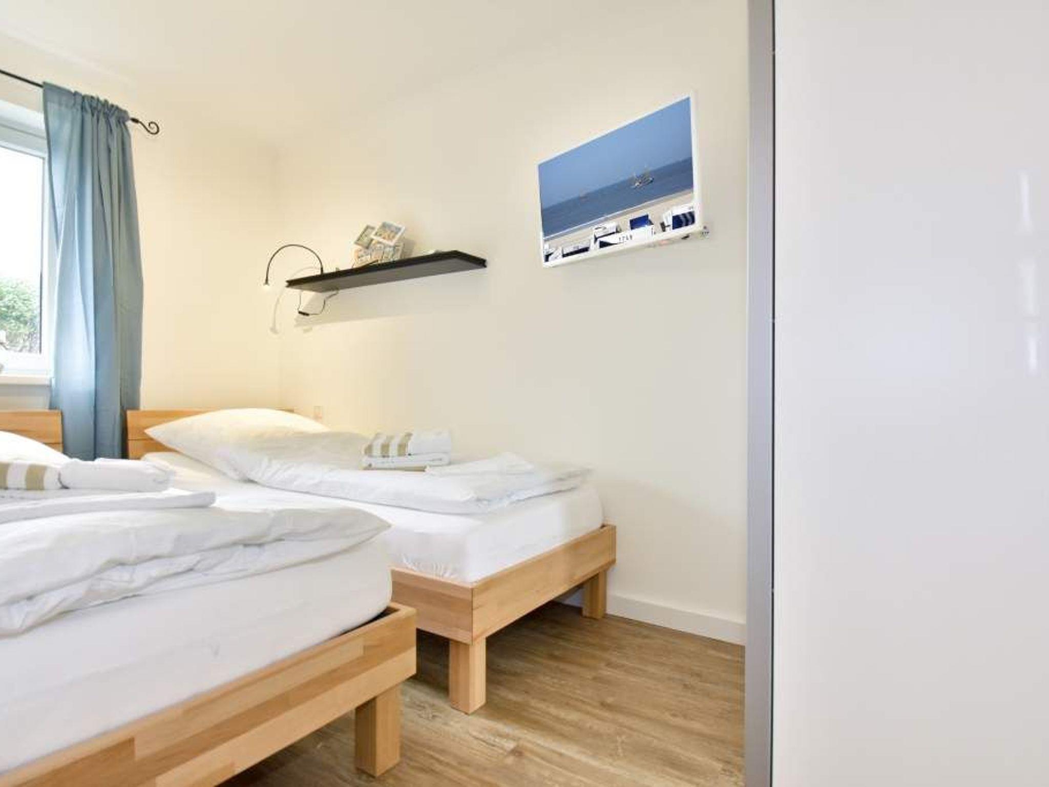 Die beiden Schlafzimmern (Doppelbett 1,80 m x 2,00 m, Einzelmatratzen bzw. zwei Einzelbetten 0,90 m x 2,00 m, jeweils ein Kabel-Flachbild-TV) versprechen einen erholsamen Schlaf während Ihrer Nächte auf Sylt.