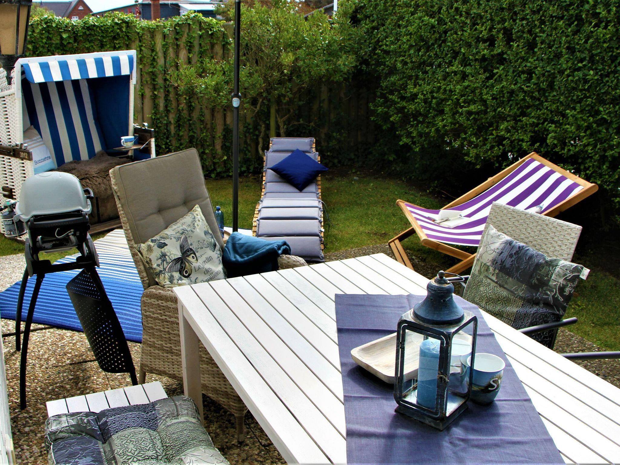 Ruhig und idyllisch liegt diese geschmackvoll und hochwertig renovierte, gemütliche 3-Zimmer-Nichtraucher-Ferienwohnung (ca. 54 m², 4 Personen) im Parterre eines 6-Parteien-Hauses in zweiter Reihe. Genießen Sie die Sonne im Strandkorb im eingegrenzten Terrassen-/Gartenteil in Süd-West-Ausrichtung, lassen Sie sich auf den gemütlichen Gartenmöbeln Ihr Gegrilltes vom zur Verfügung stehenden WEBER-Gasgrill schmecken, nutzen Sie Ihre eigene auf der Terrasse ebenfalls bereitstehende Sauna, oder trotzen Sie dem Nordseewetter bei einer Tasse Tee in der heimeligen Wohnstube.