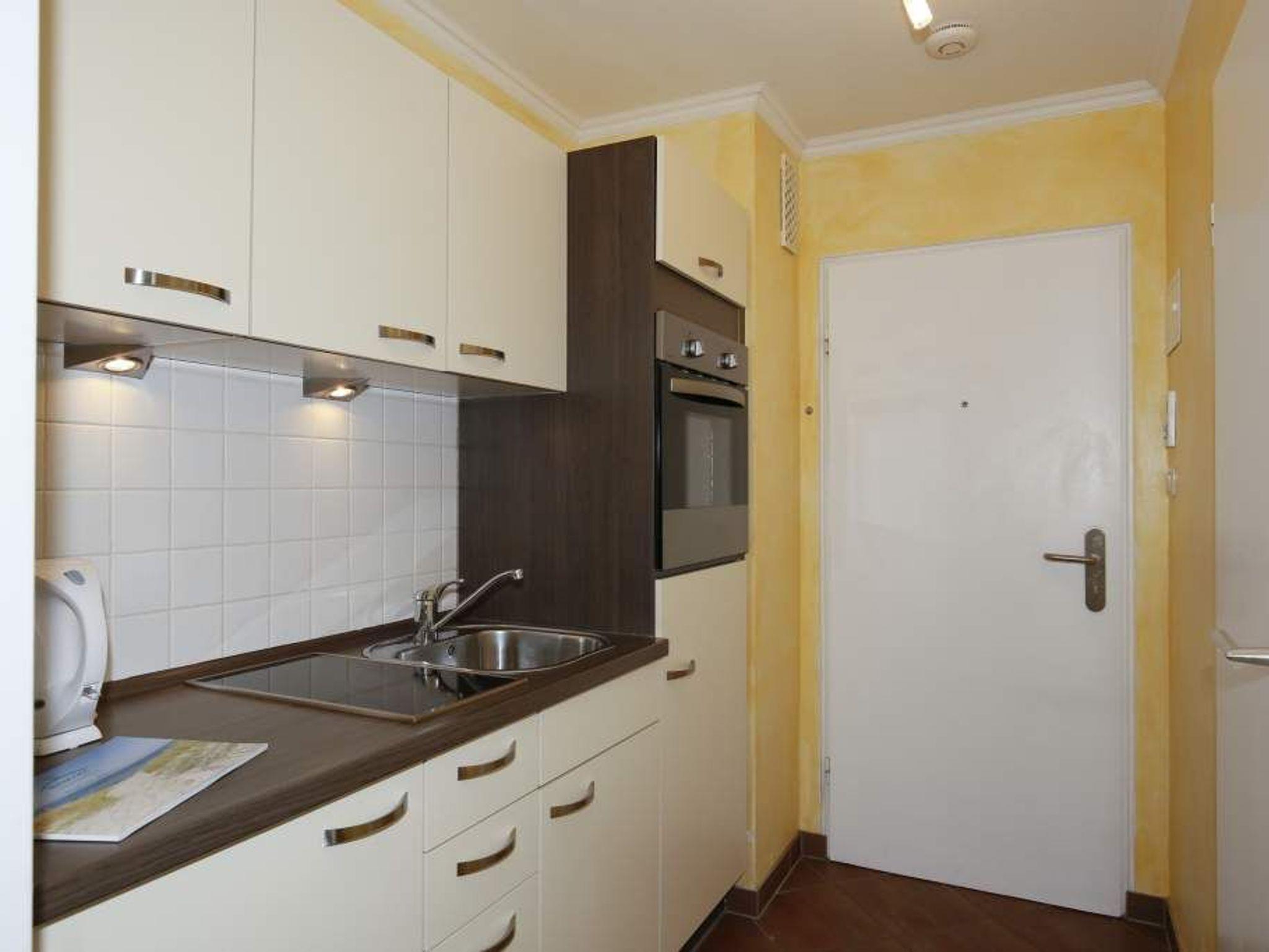 Die Küchenzeile hat ein Backofen und ein Cerankochfeld (2Kochfelder), einen Kühlschrank, Kaffeemaschine, Wasserkocher und Toaster gehören zur Grundausstattung.